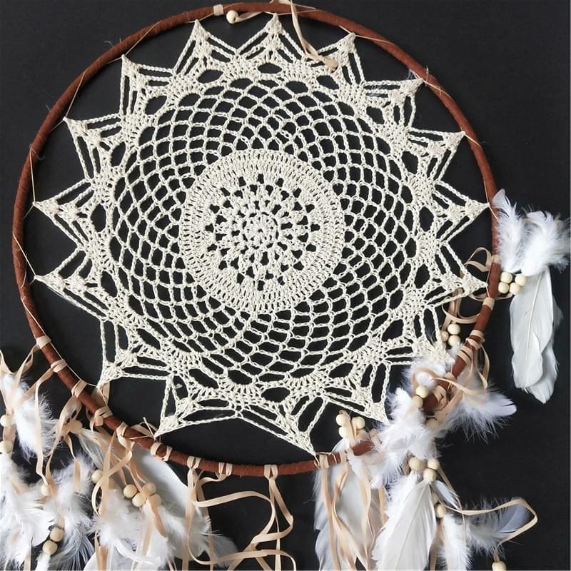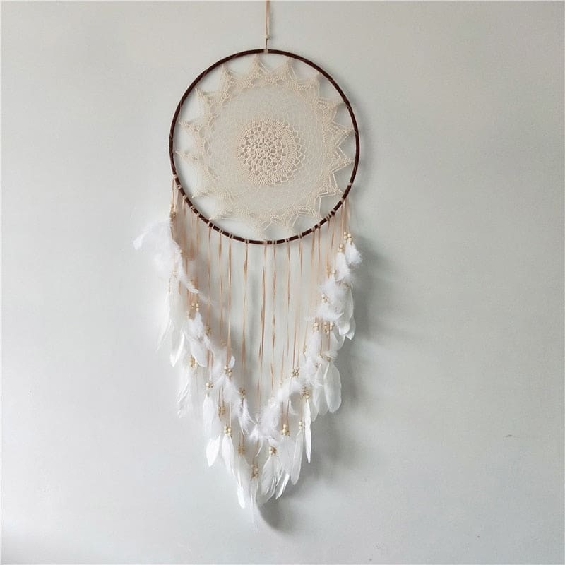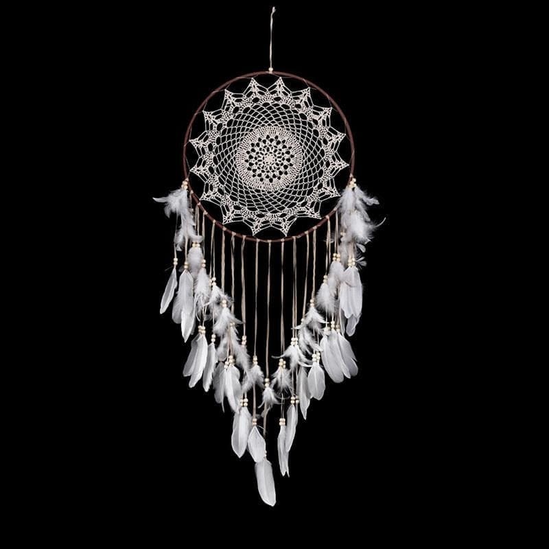 Dormez paisiblement après qu’une merveilleuse histoire vous ait bercé, grâce à cet Attrape-Rêves Indien aux Majestueuses Plumes Blanches de Grand Format