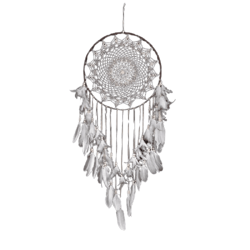 Laissez-vous transporter dans un sommeil serein et sans perturbations. Notre grand Attrape-Rêves Indien aux plumes blanches est conçu pour éloigner les énergies négatives qui pourraient troubler votre repos nocturne!