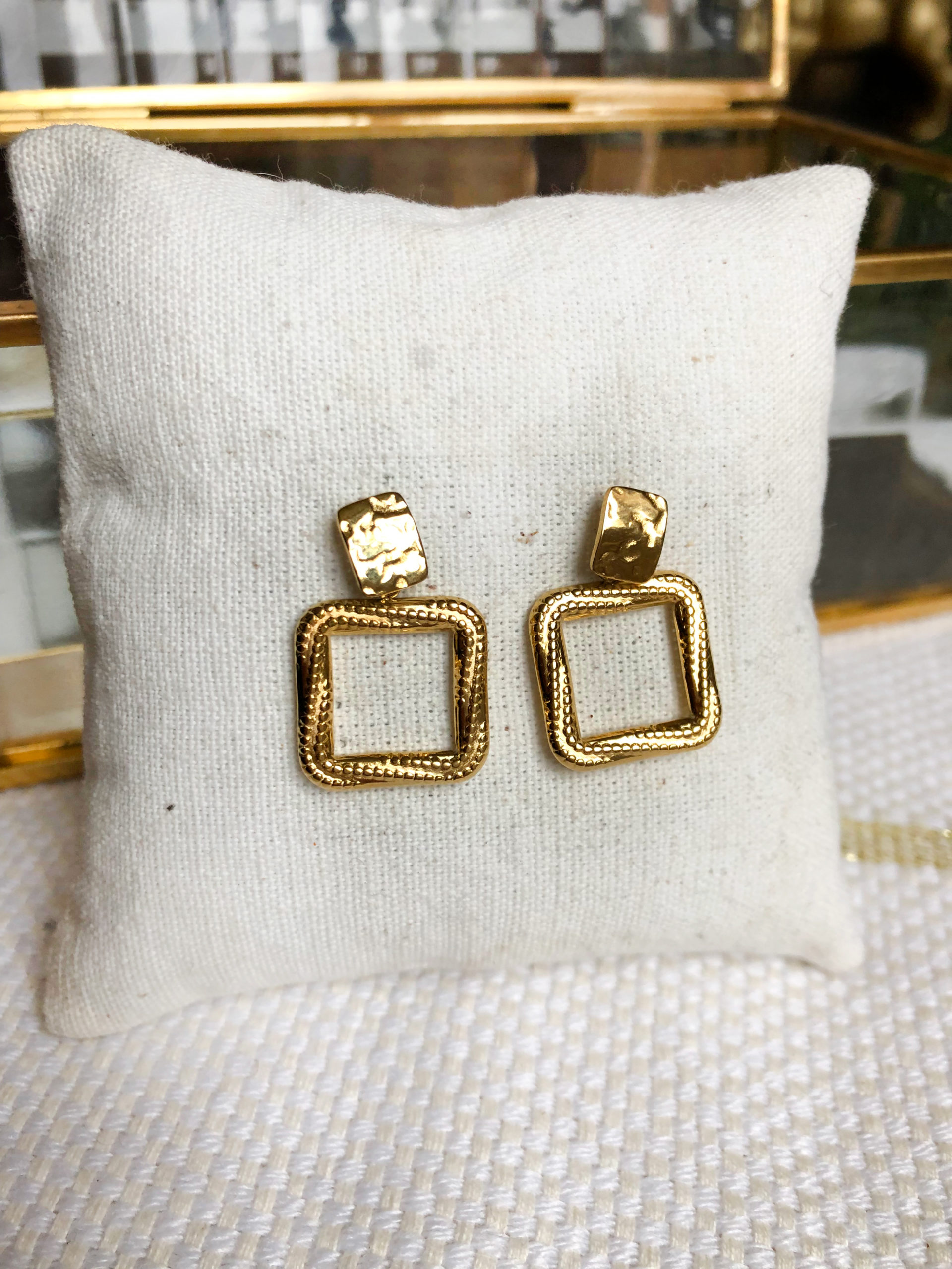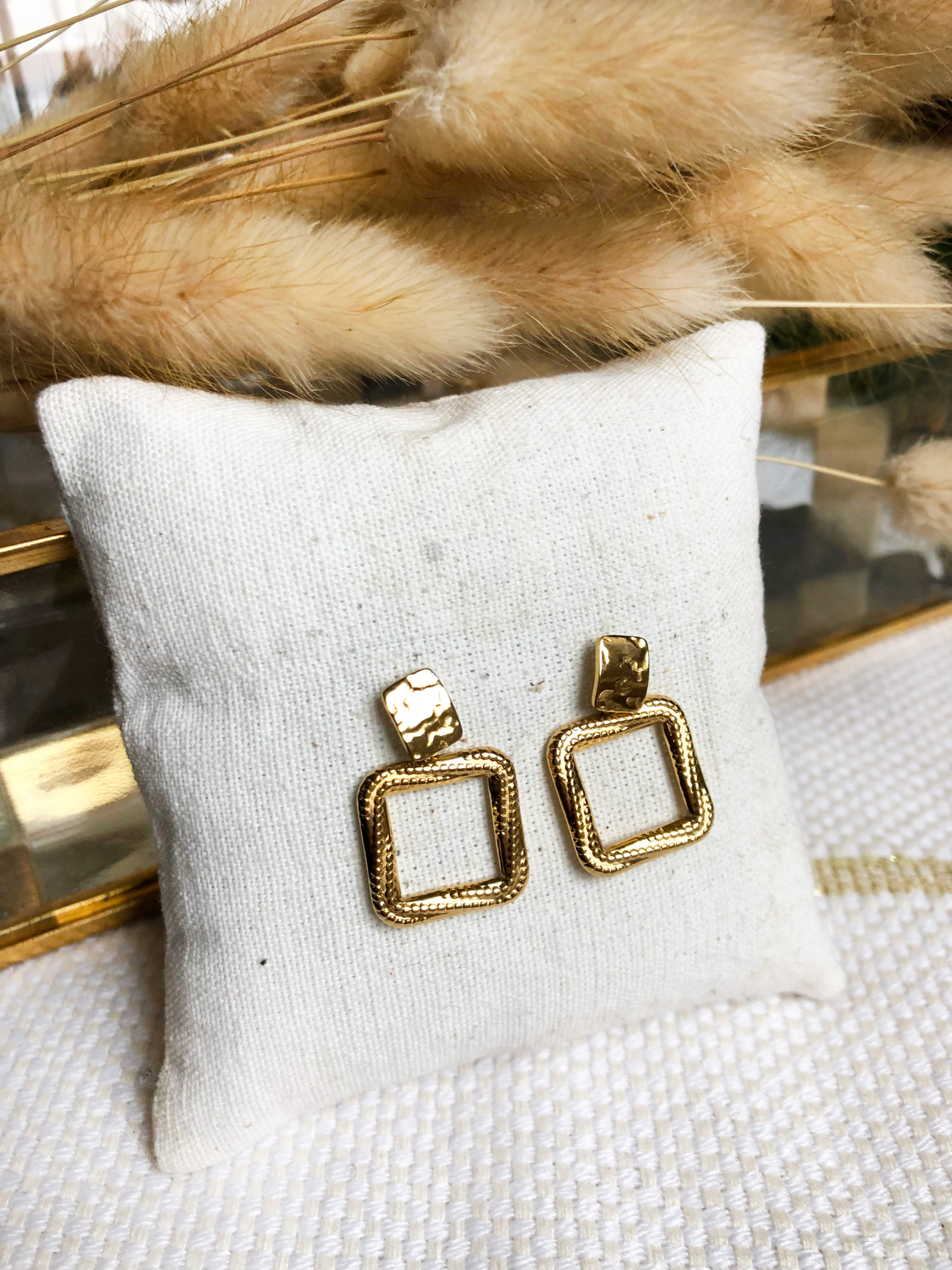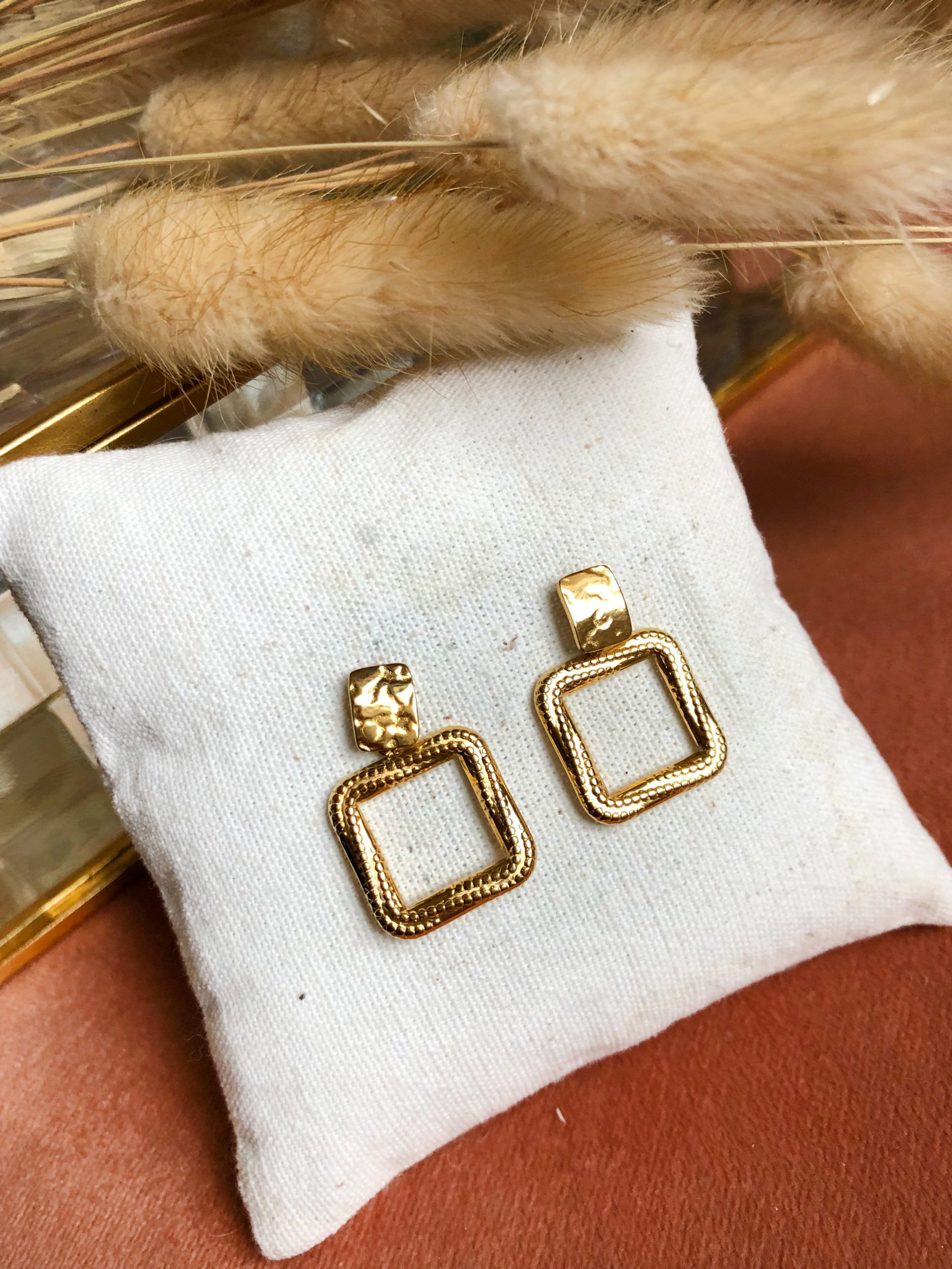 NINA, les boucles d’oreilles à forme carré avec joli effet martelé