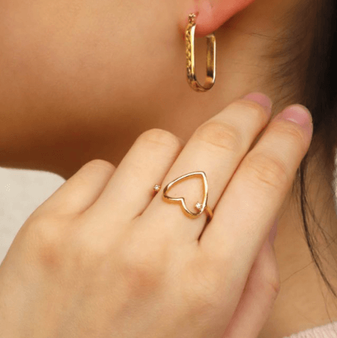 Bague Bianca en plaqué or 18 carats en forme de cœur avec un strass, fabriquée en France, ajustable