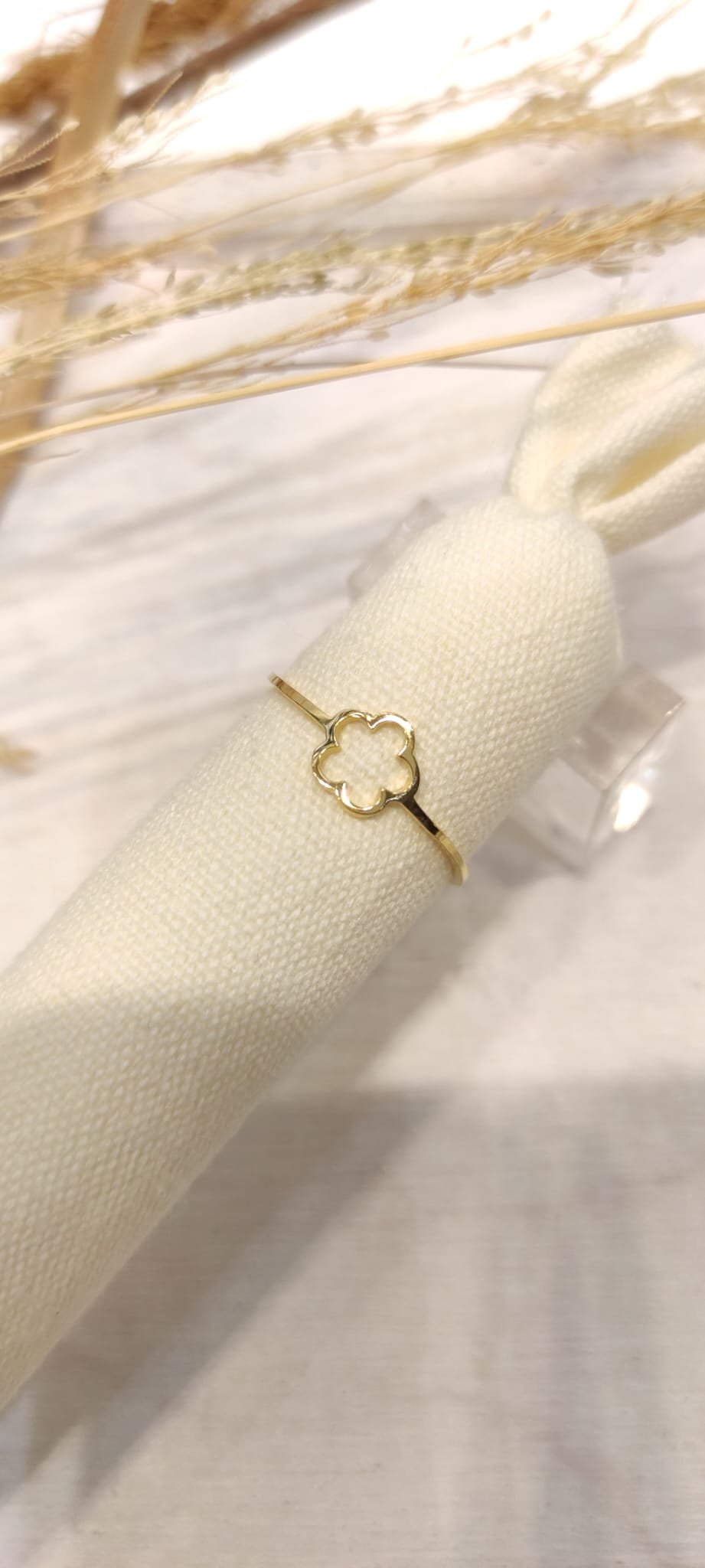 Bague fleur réglable dorée acier inoxydable