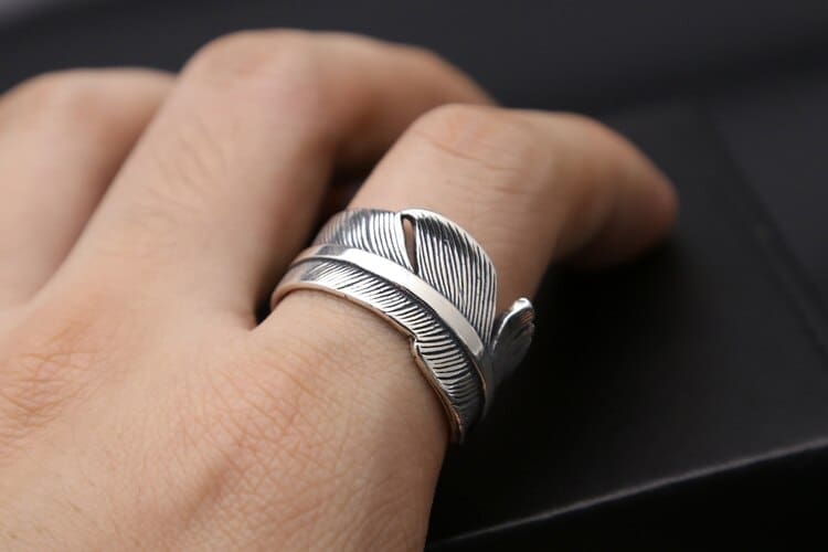 Adoptez l’élégance amérindienne avec cette bague argentée en forme de plume, confectionnée à la main pour un style authentique. Idéale pour rehausser votre tenue d’une empreinte autochtone nord-américaine, cette œuvre artisanale se démarque par ses détails minutieux et son design unique. Elle est parfaitement adaptée pour ceux désirant un accessoire subtil et raffiné qui symbolise la liberté et le courage. Offrez ce bijou comme marque d’aventure et d’indépendance spirituelle.