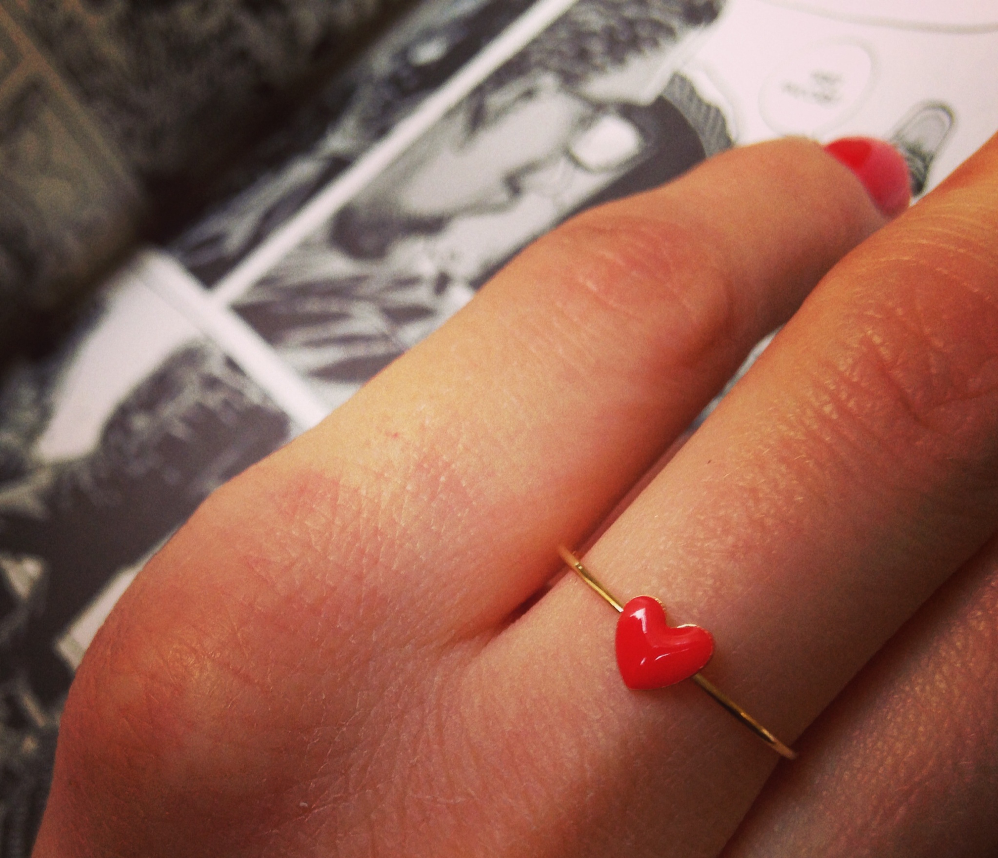 Habillez votre doigt de cette adorable bague très discrète en forme de coeur rouge vif pour vous rappeler tous les jours que finalement, seul l’amour compte.