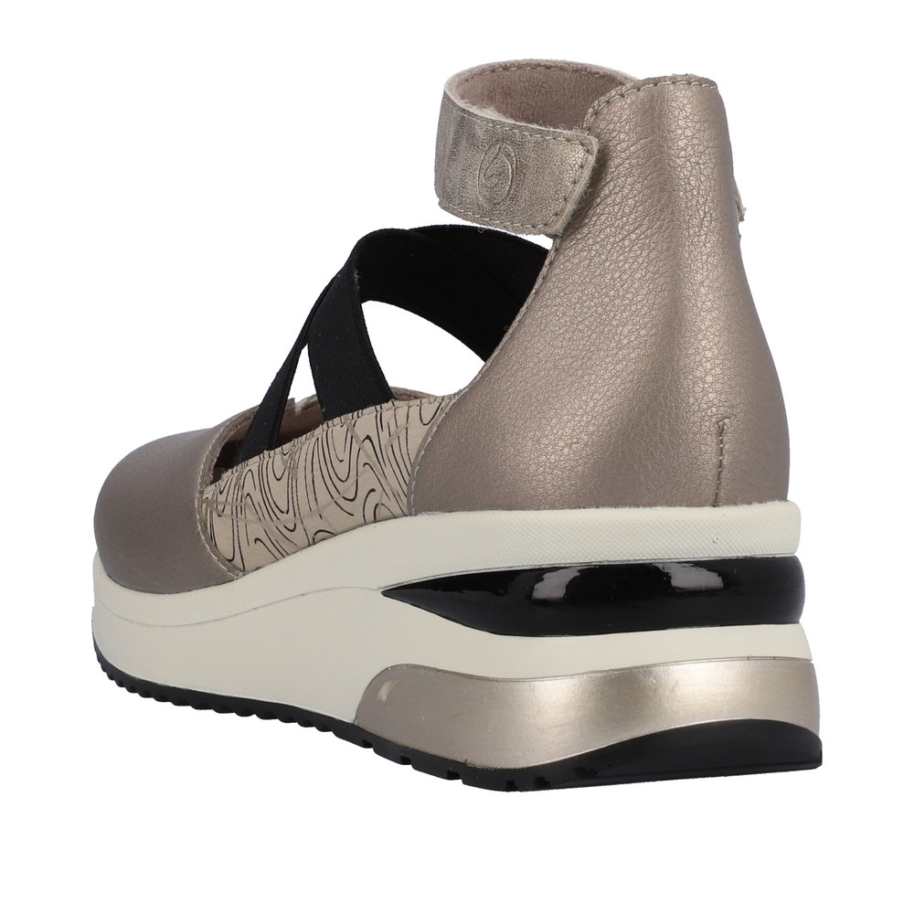 Ballerines femme talon compensé brides élastiquées fermeture velcro coloris beige multi / noir REMONTE D2411-90