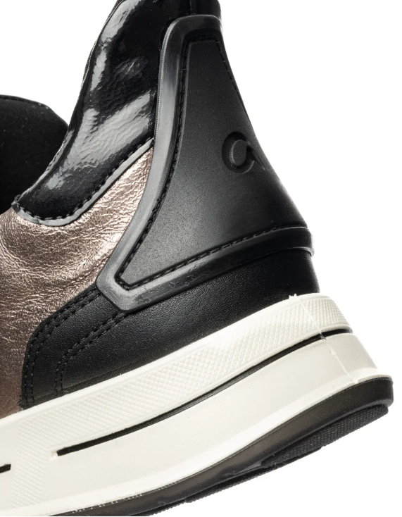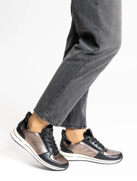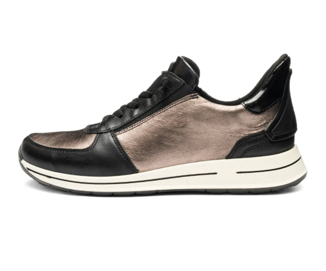 Basket femme cuir souple semelle épaisse confortable grande largeur A enfiler ARA 1224836-15 OSAKA Coloris noir/bronze