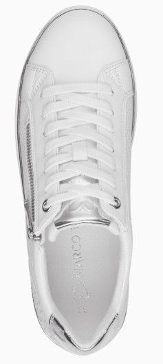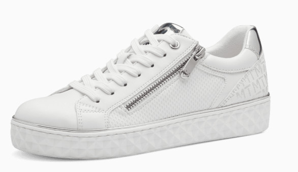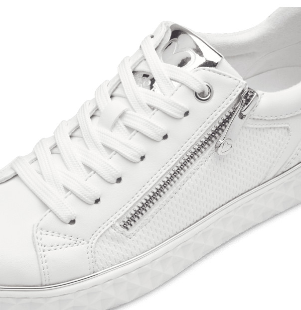 Basket blanche avec semelle semi-épaisse effet gaufré. Un zip sur le côté. Semelle intérieure amovible. 100% vegan