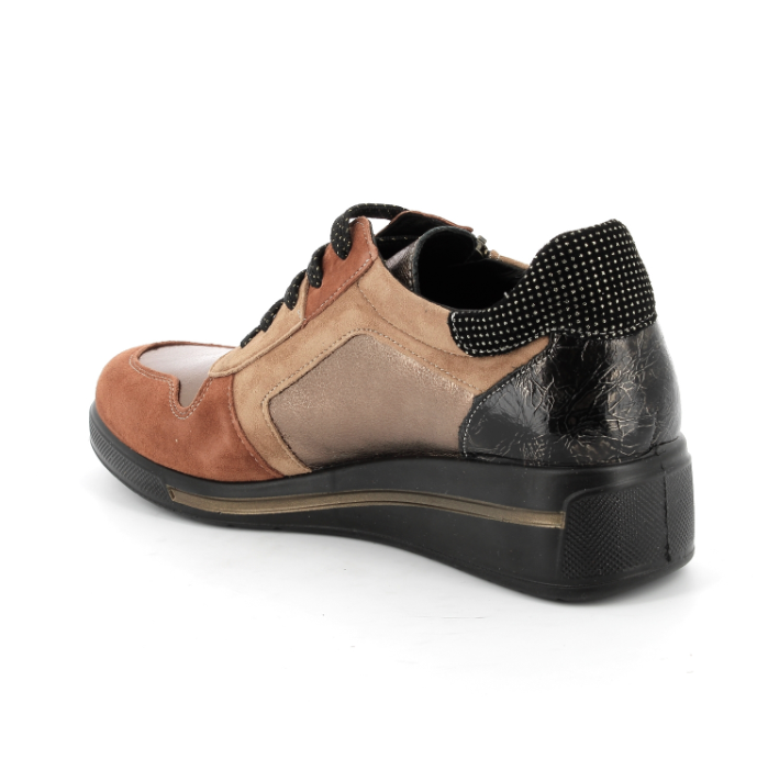 Basket mode femme Cuir Talon compensé Lacets + fermeture éclair INFINI/INEA coloris bronze multi./noir