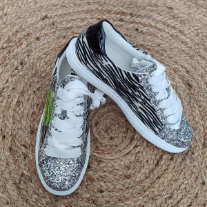 Le lacet plat gris permet d’ajuster la tennis à votre morphologie, tandis que le zip latéral sert à fermer rapidement la chaussure.