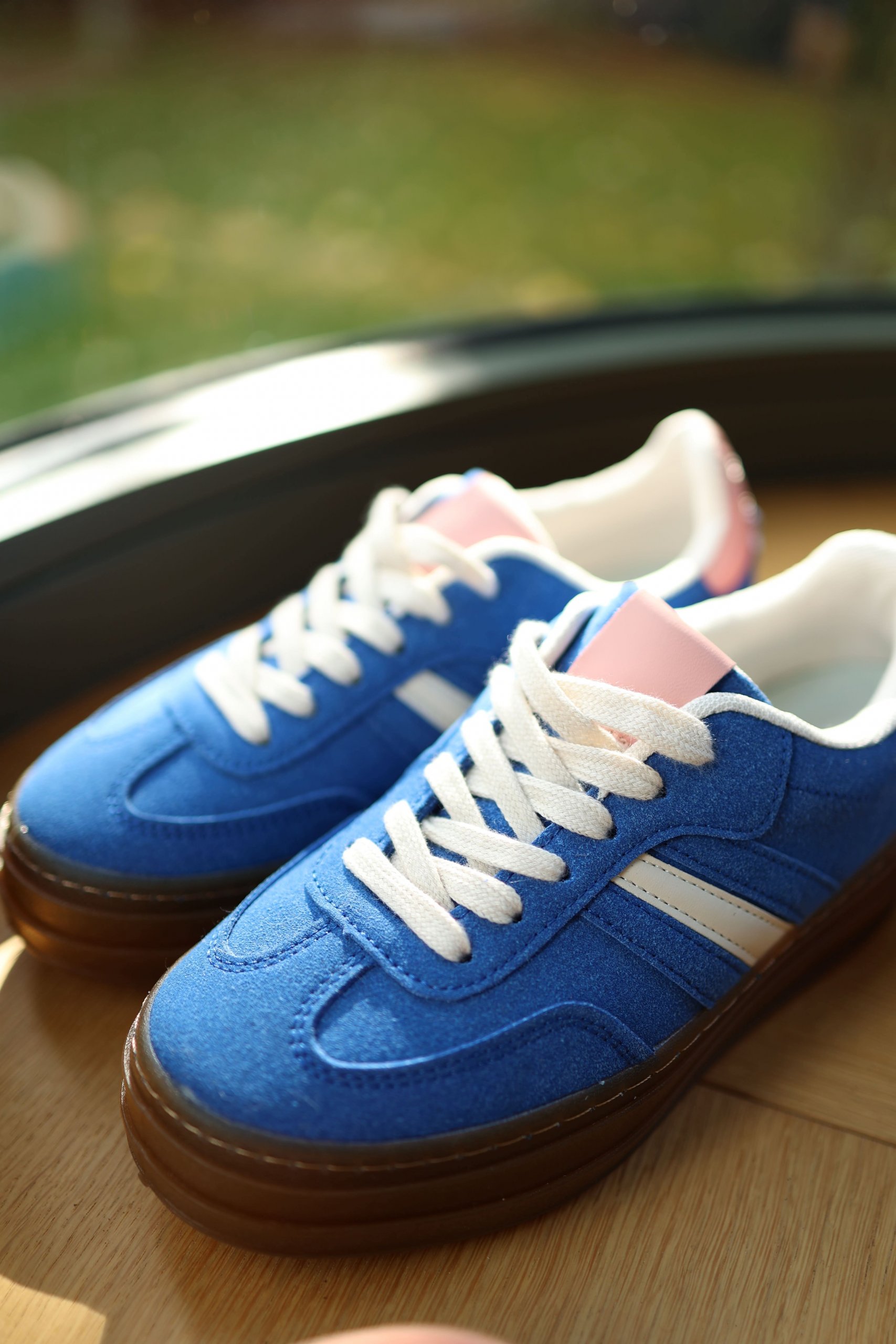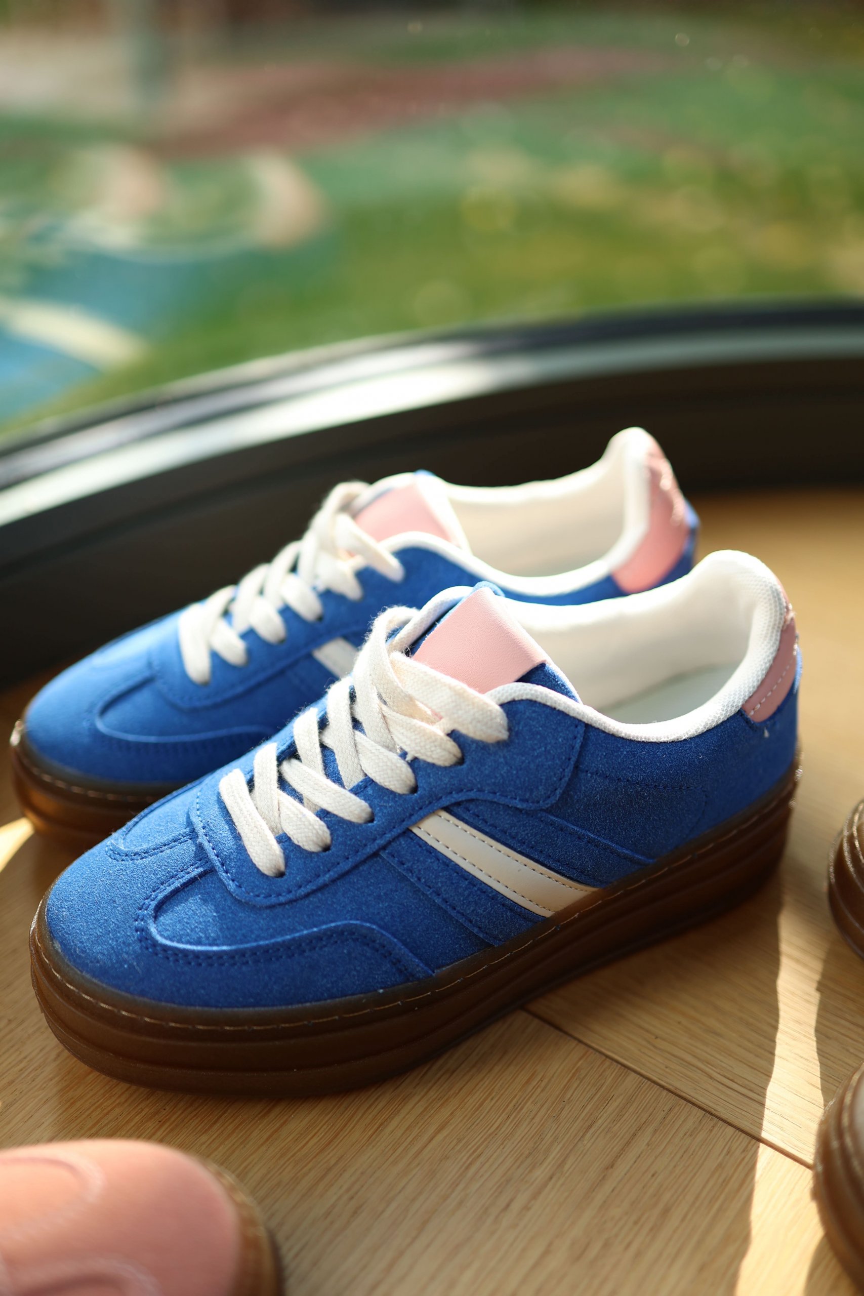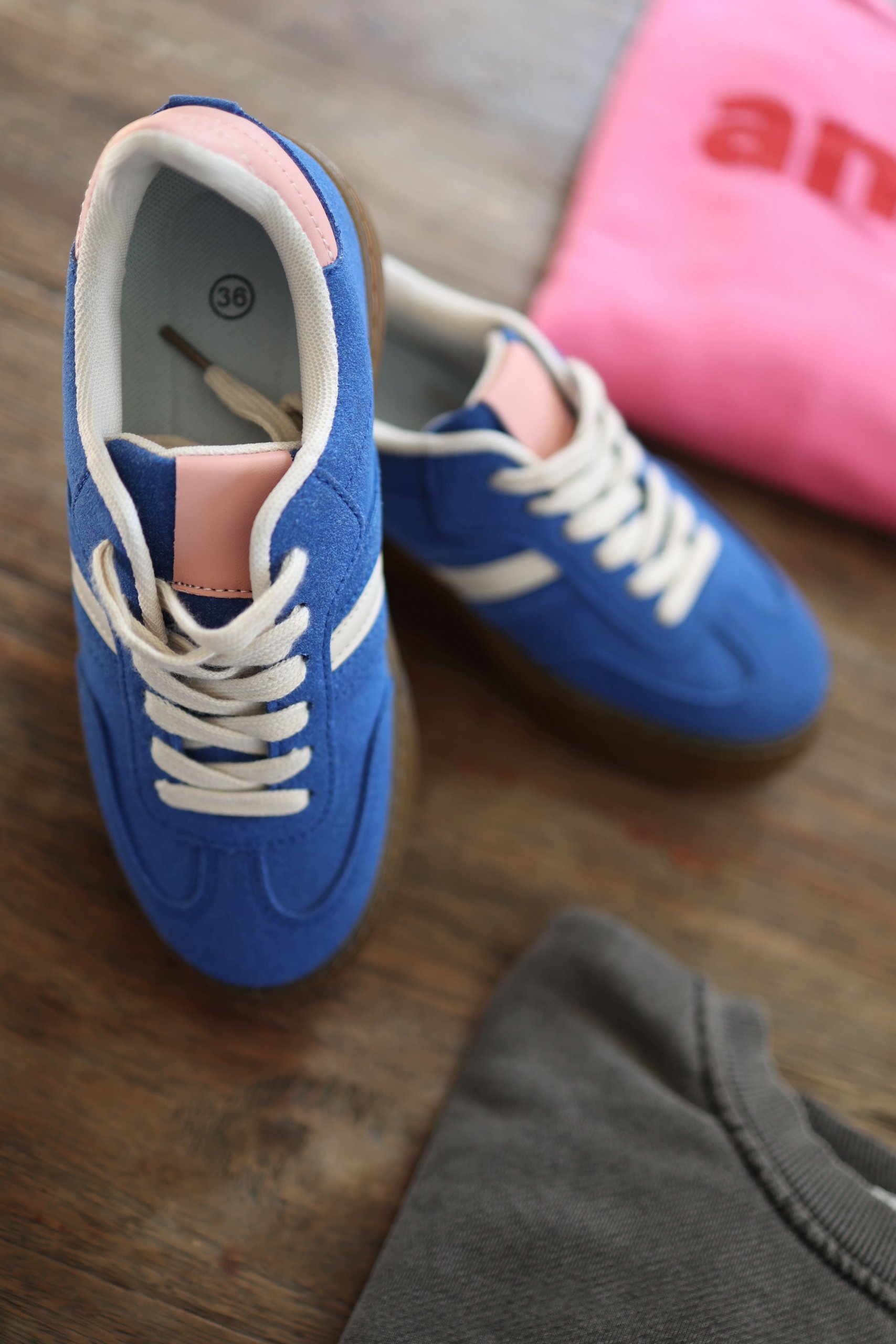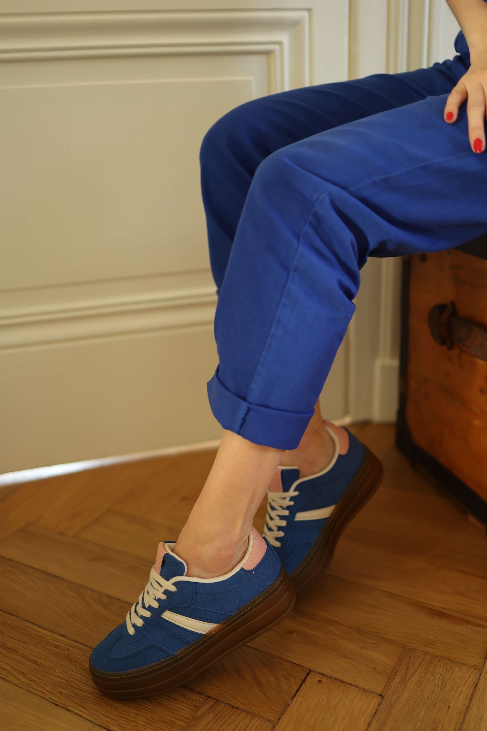 Baskets compensées bleu klein et rose