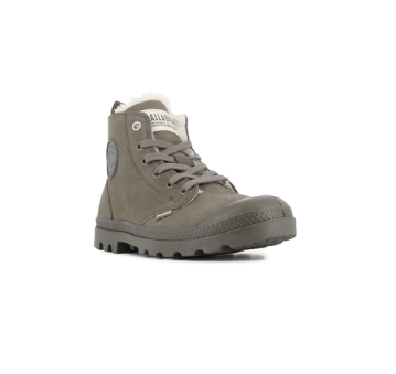 Baskets montantes Cuir nubuck Femme lacet+zip Doublure chaude Talon plat très souples Semelle crantée PALLADIUM HI ZIP WL Coloris gris rock