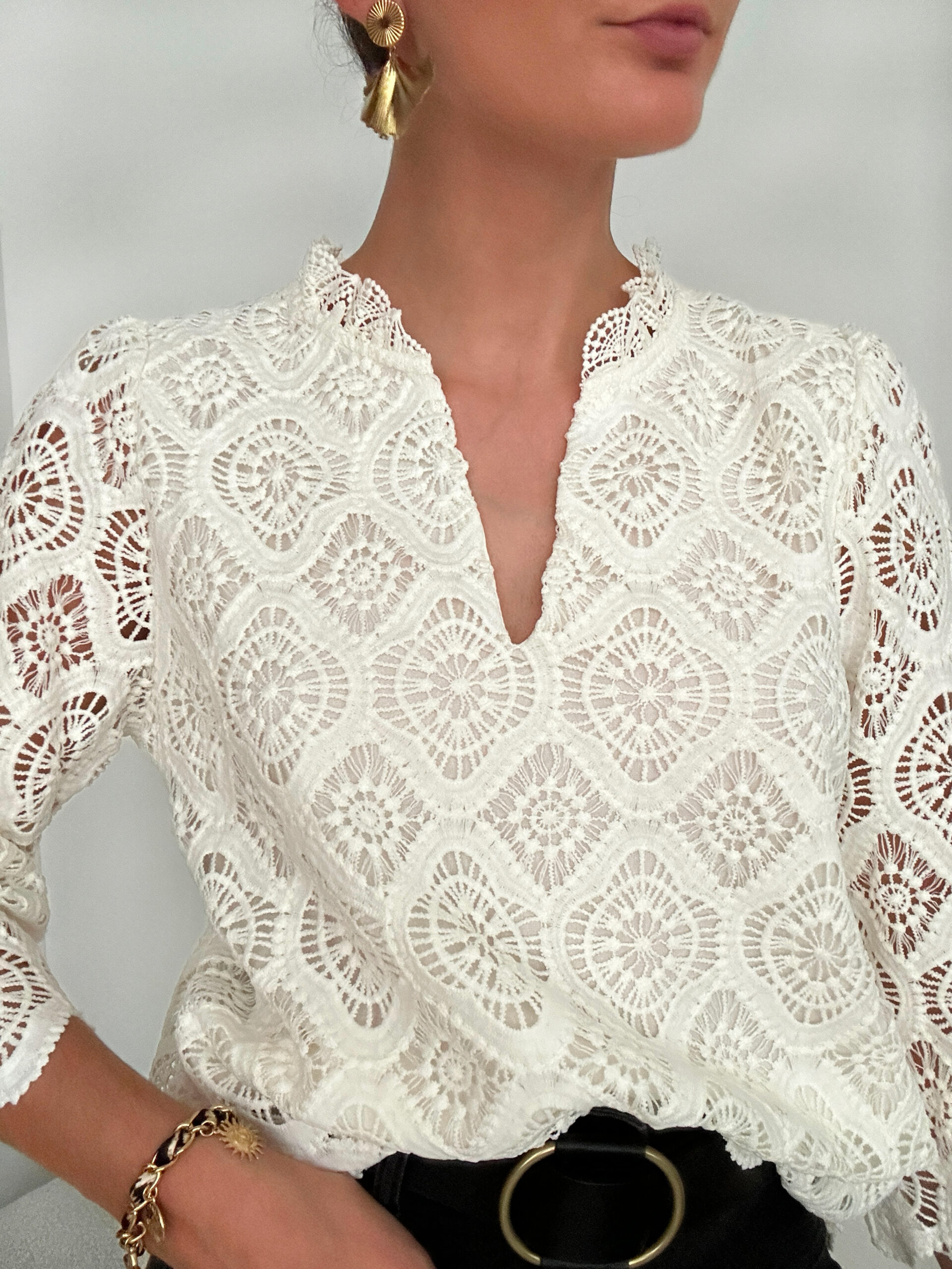 Emma est une jolie blouse écru, chic et féminine avec de jolis détails :
