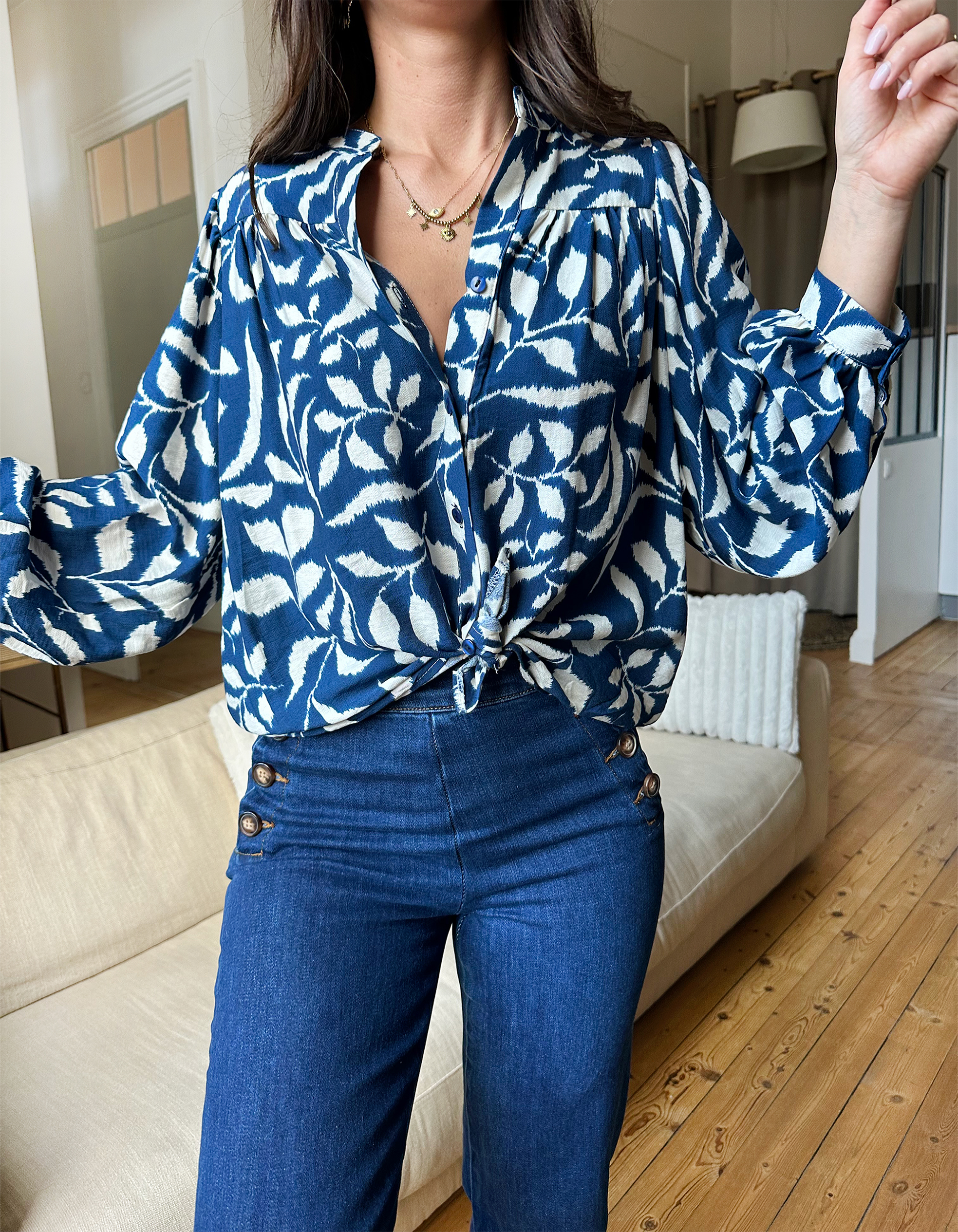Sa coupe aérienne confectionnée en matière naturelle fait d’elle une blouse bohème chic par excellence.