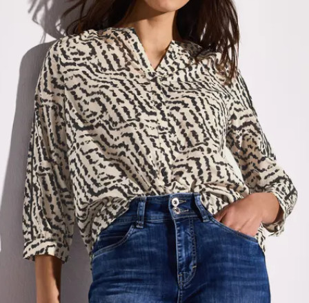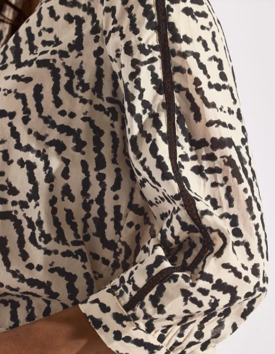 Blouse manches 3/4 encolure fendue. Détail broderie sur les manches. 100% coton Lavage machine 30°
