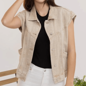 Blouson bi-matière avec manches en fausse fourrure. Partie avant et arrière matelassée kaki. Deux poches plaquées à l’avant. Fermeture zippée. Taille ajustable par cordon.