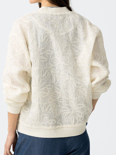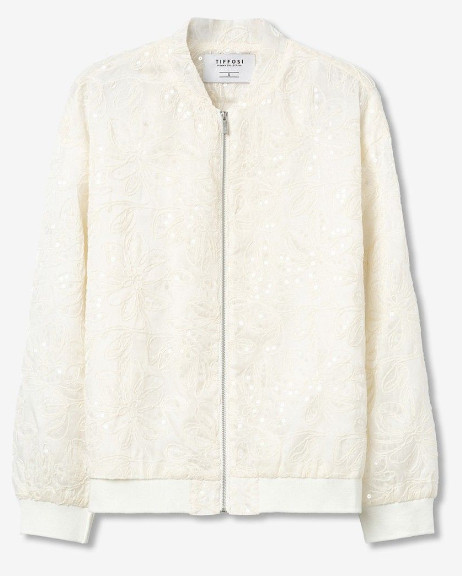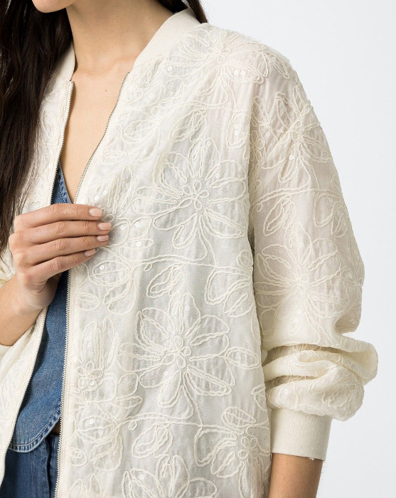 Veste style bombers avec sequins. Broderie fleurs, aspect brillant. Entièrement doublé.
