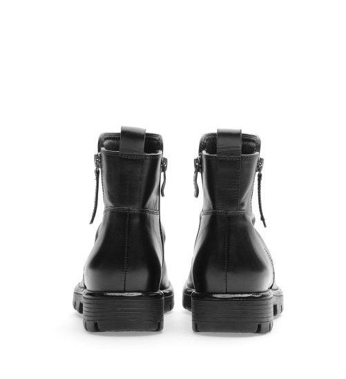 Boots femme à deux fermeture éclair Semelle mode Cuir souple doublure chaude ARA coloris noir