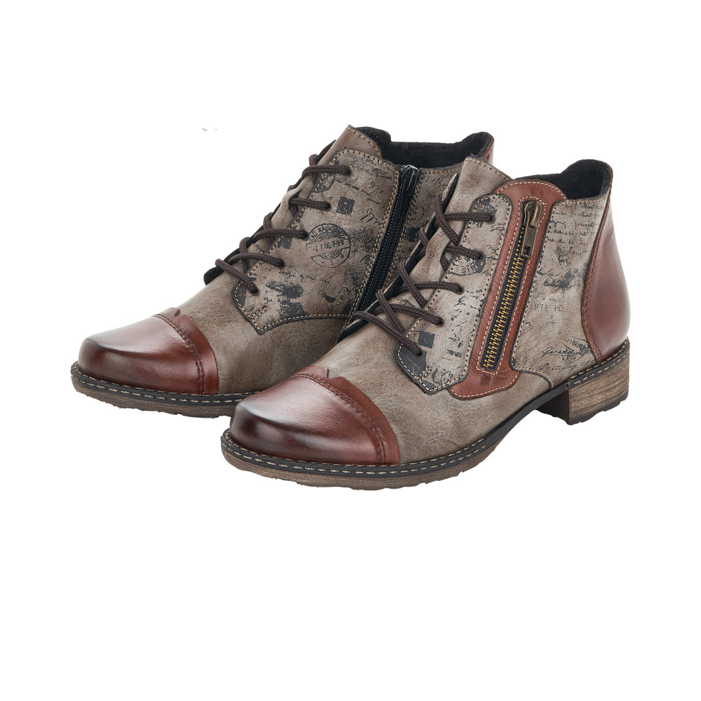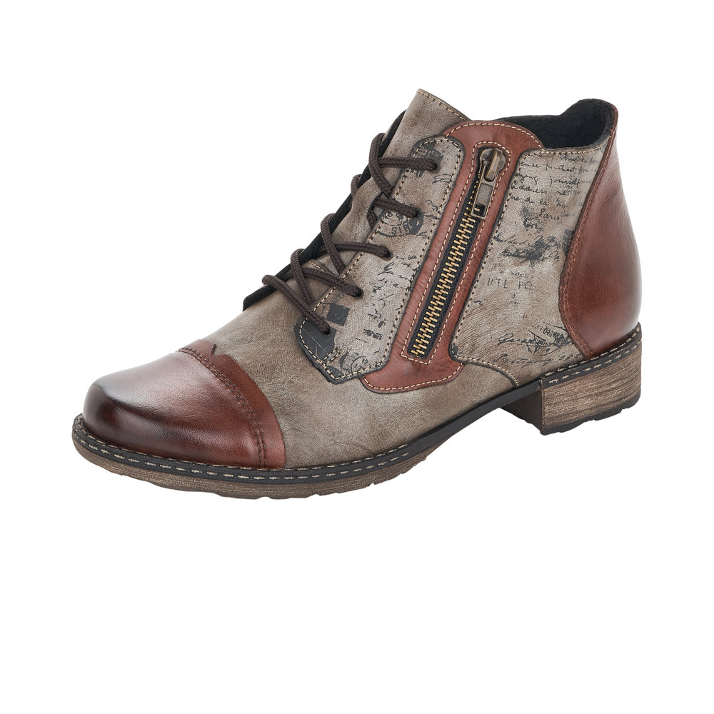 Boots femme Lacets + zip Chaussant large Semelle intérieure amovible REMONTE D4378-25 coloris marron combiné