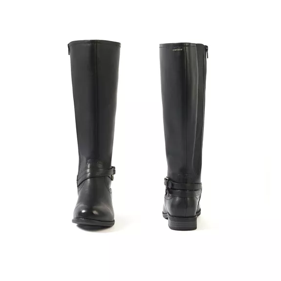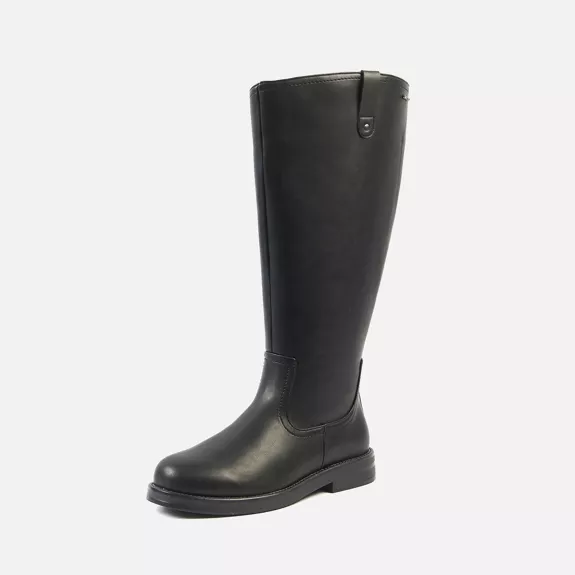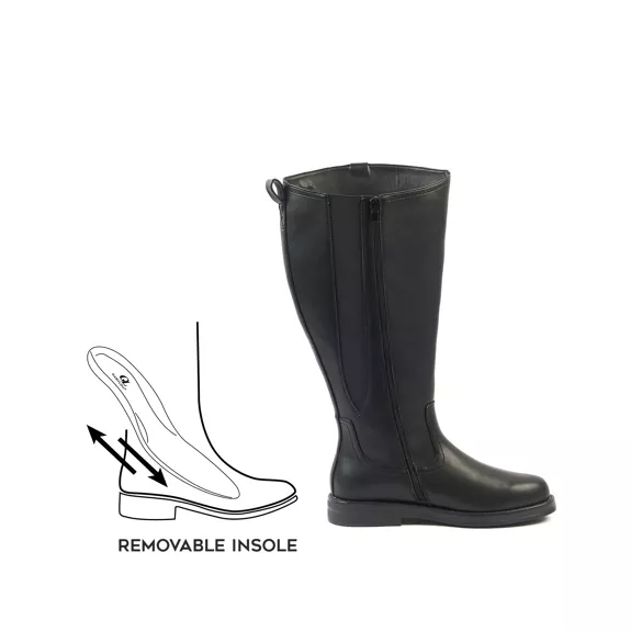 - Ce modèle spécialement conçu pour les femmes qui ont des mollets larges est fabriqué en PU synthétique de haute qualité et monté sur un talon plat.
