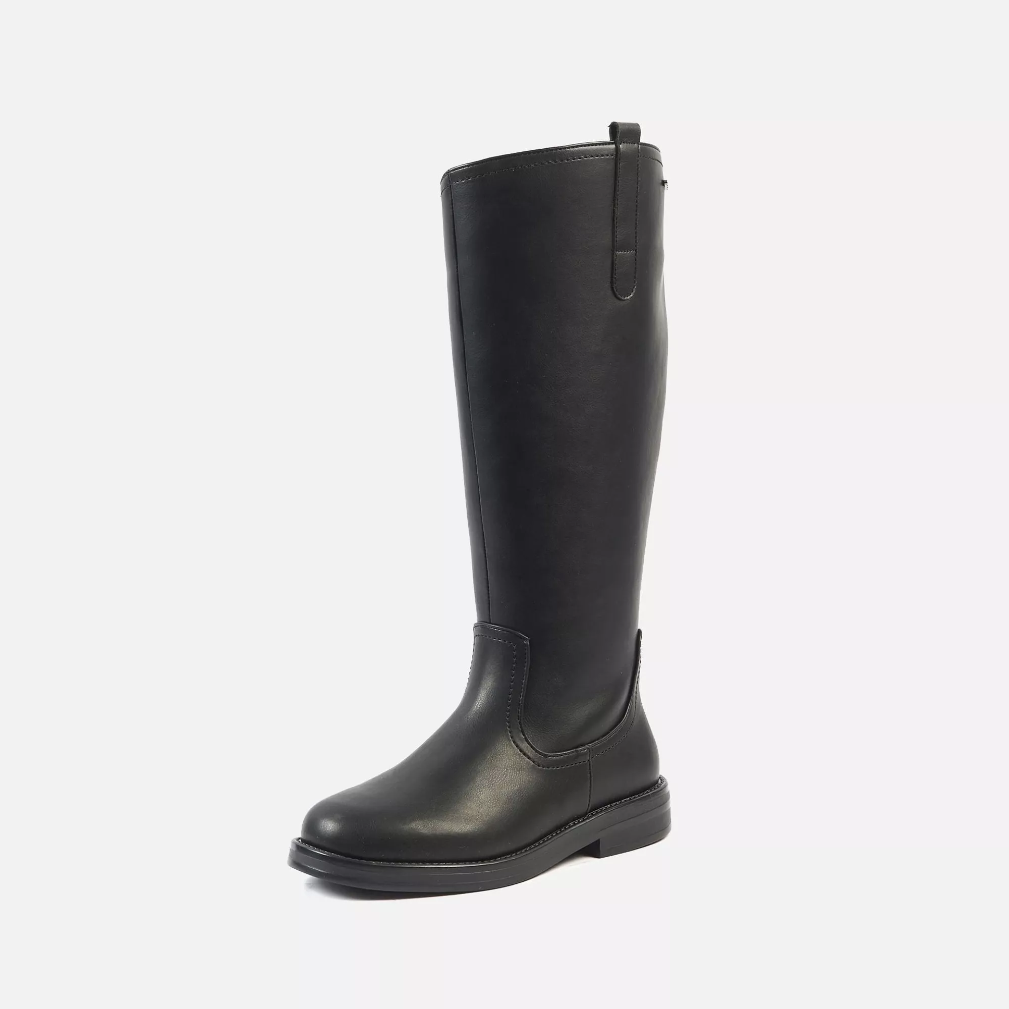 - Ce modèle spécialement conçu pour les femmes qui ont des mollets larges est fabriqué en PU synthétique de haute qualité et monté sur un talon plat.