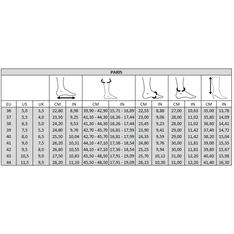 - Le modèle Paris allie élégance et confort, conçu pour les femmes avec des mollets larges. En cuir de haute qualité, il possède une doublure en textile et une semelle extérieure antidérapante. La semelle intérieure, amovible, permet l’ajustement ou l’utilisation de semelles orthopédiques.