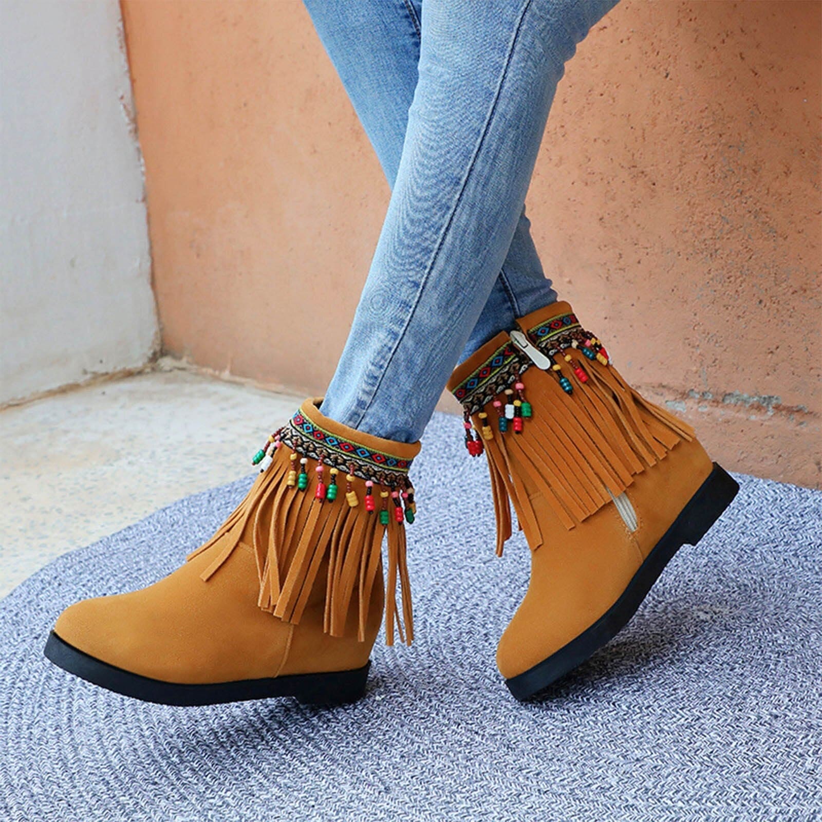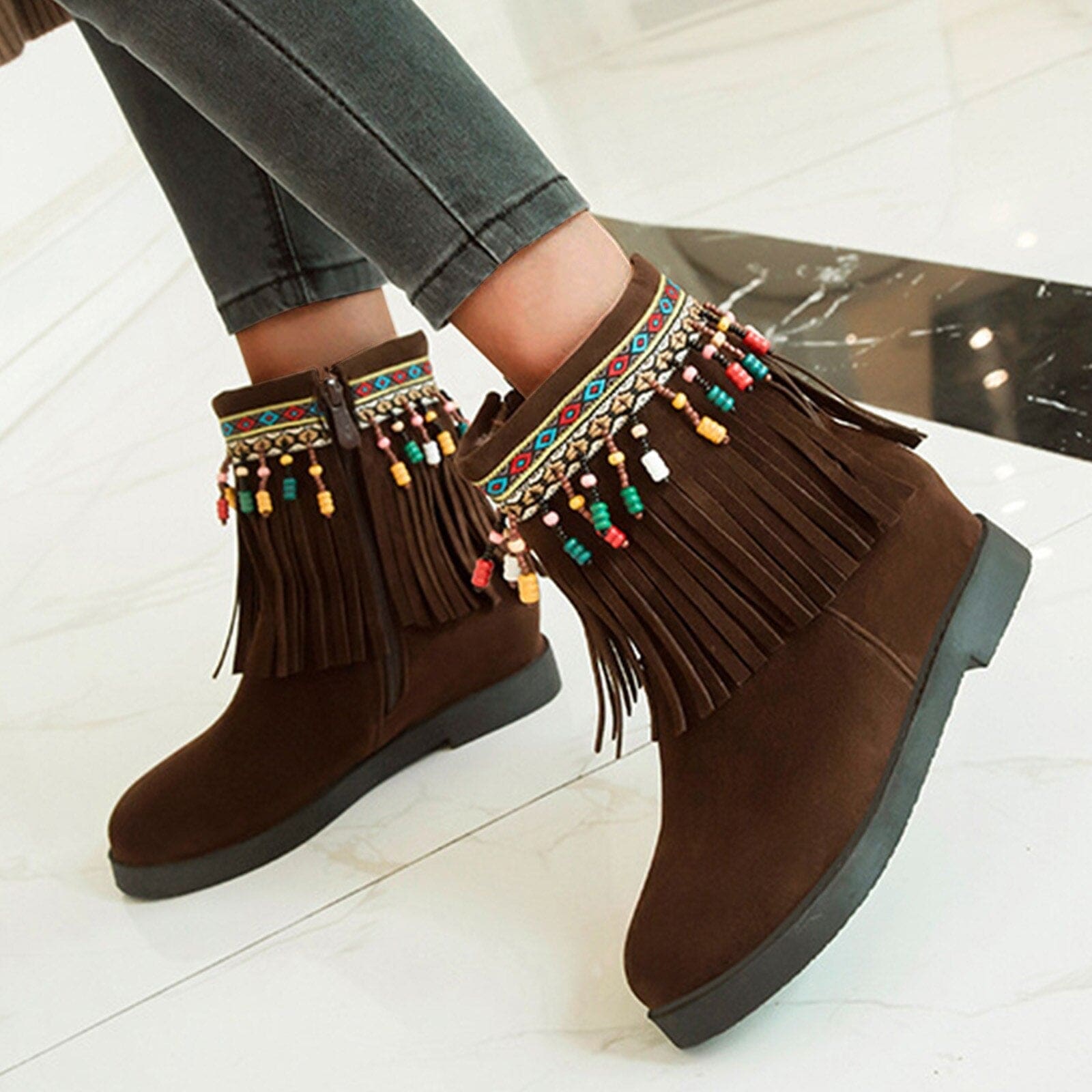 Adoptez un look Amerindian contemporain avec notre sélection tendance de Bottes à Franges. Découvrez notre éventail de couleurs telles que le teinte Caramel, l’ébène profond, le Brun classique, et l’éclat du Rouge. Faites votre choix parmi cette palette et n’oubliez pas de jeter un œil à notre assortiment de Sacs à Franges pour parfaire votre ensemble avec un accessoire assorti à vos nouvelles bottes.