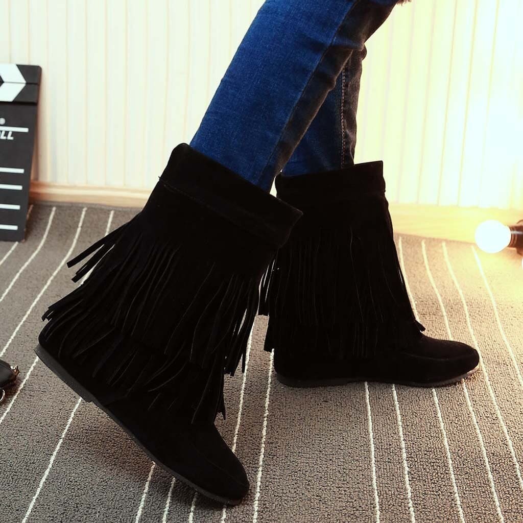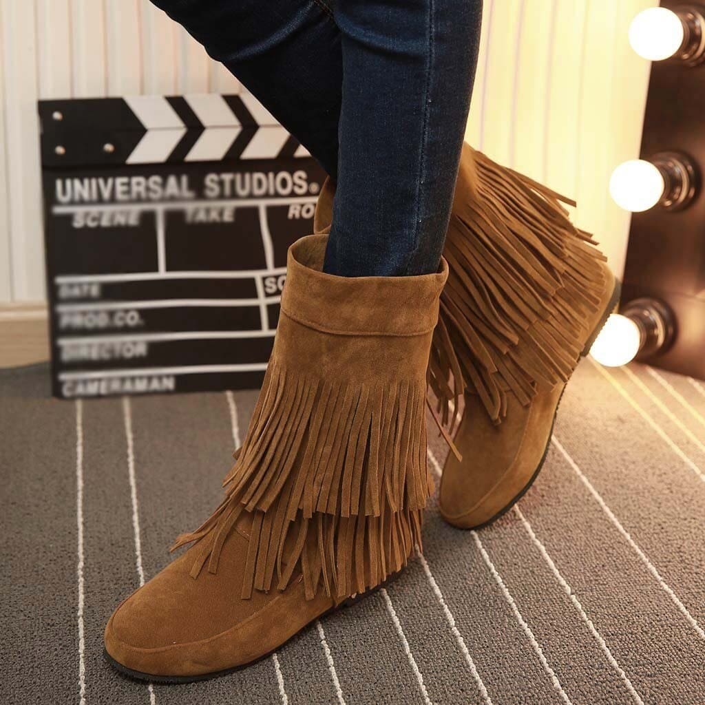 Passionnées de la mode amérindienne ? Offrez-vous ces sublimes bottes indiennes à franges pour affronter l’hiver en style. Disponibles en cinq teintes. Elles sont équipées d’une semelle en gomme anti-glisse. Doublure intérieure 100 % coton pour une chaleur optimale de vos pieds. En taille 33 disponibles, idéales pour assortir mère et fille, n’attendez plus pour choisir une paire.