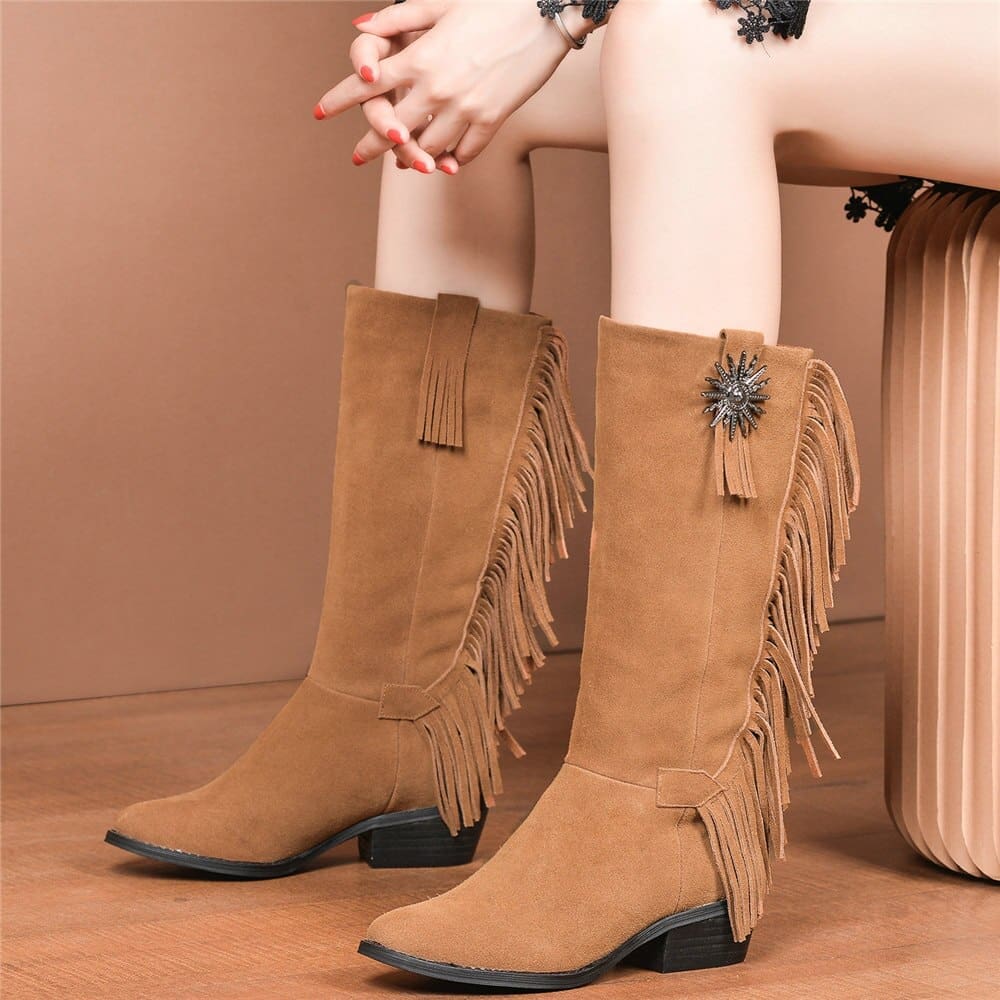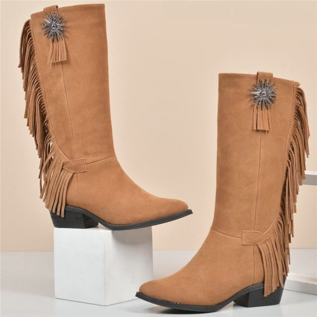 Affirmez votre style d’amazone avec cette magnifique paire de Bottes Western en Daim Marron