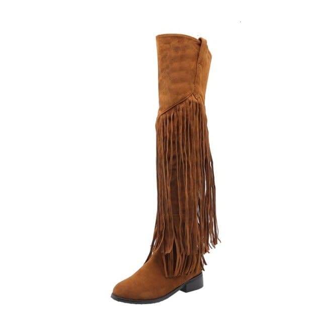 Fabriquées en Daim Synthétique de première qualité, ces Bottes à Franges offrent un confort optimal tout en gardant vos pieds au chaud et en assurant une grande flexibilité.