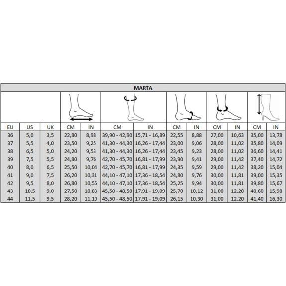 - Notre modèle de bottes MARTA est un modèle de bottes au design intemporel qui s’adapte à toutes les occasions. que ce soit au bureau. en soirée ou lors d’une sortie décontractée en ville.