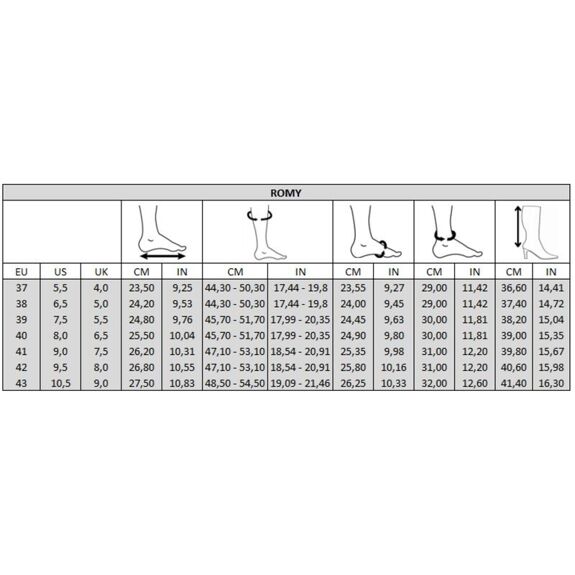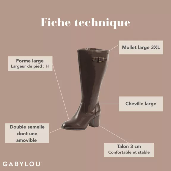 De plus, un élastique d’aisance est intégré pour offrir un supplément de largeur et de confort assurant un ajustement parfait et une sensation agréable tout au long de la journée. Une boucle discrète au-dessus de la botte ajoute une touche de raffinement et un détail stylistique supplémentaire complétant le design élégant du modèle ROMY. Disponible en plusieurs coloris, le modèle ROMY est parfait pour toutes les occasions du quotidien aux sorties plus habillées. Optez pour les bottes ROMY pour une combinaison parfaite de style, confort et adaptabilité.- – Taille de mollet : VARIO 3XL/4XL