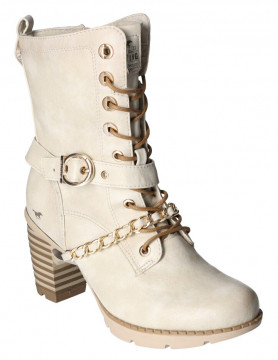 Bottine à talon intièrement fourrée. Fermeture zippée. Chaîne décorative. Hauteur talon environ 7 cm