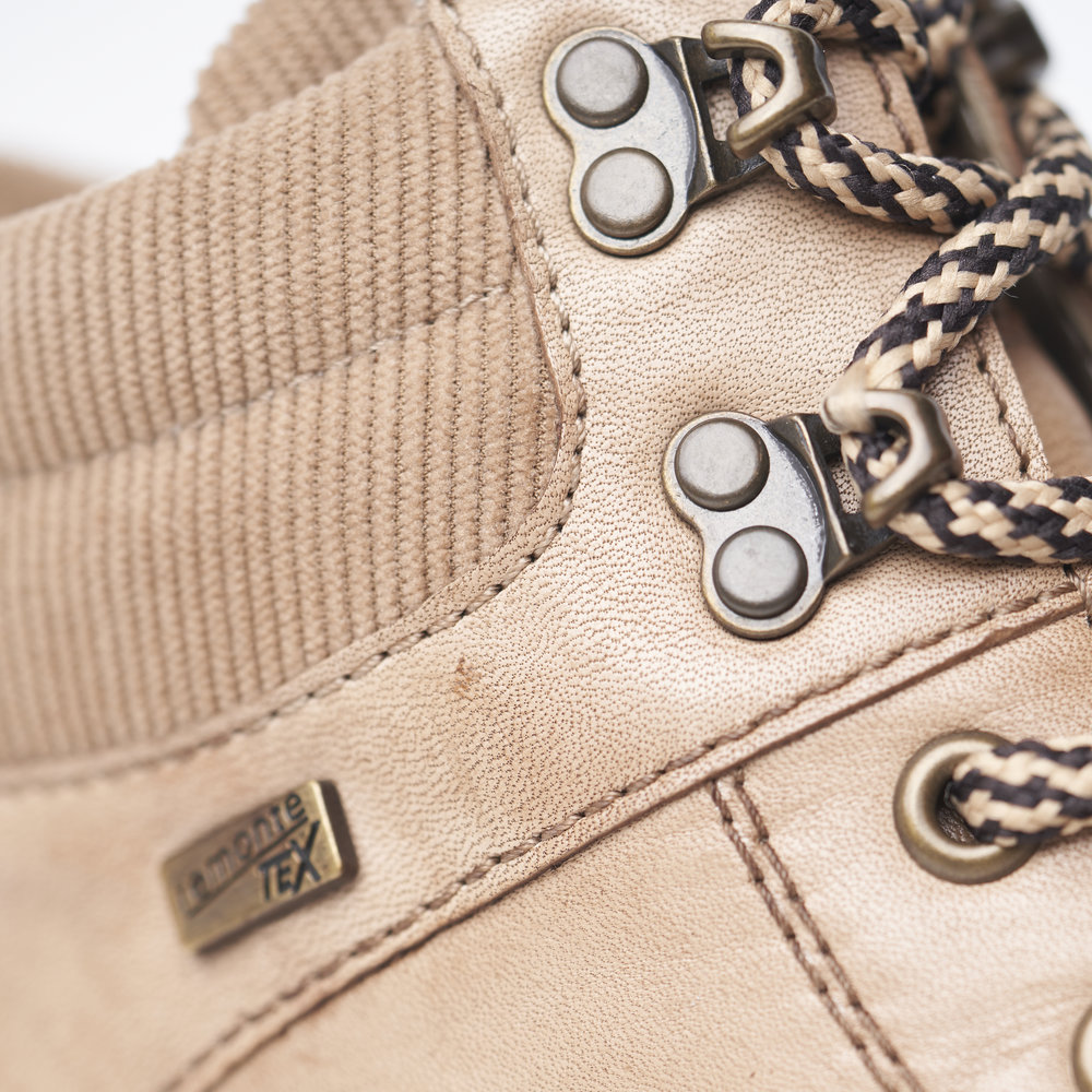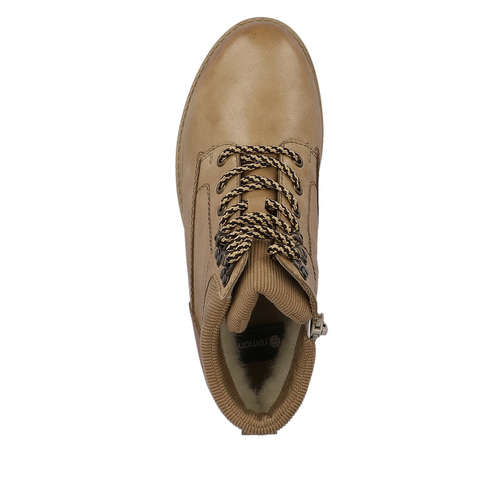 Bottine cuir tendance femme lacet+zip talon carré doublure laine chaude REMONTE D0W75 Coloris beige