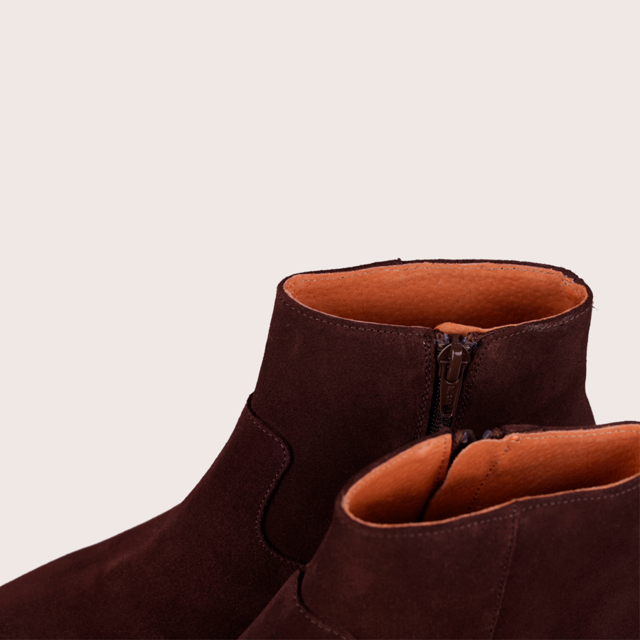 Bottines en cuir suédé marron très doux. Fabriqué à la main en Espagne.