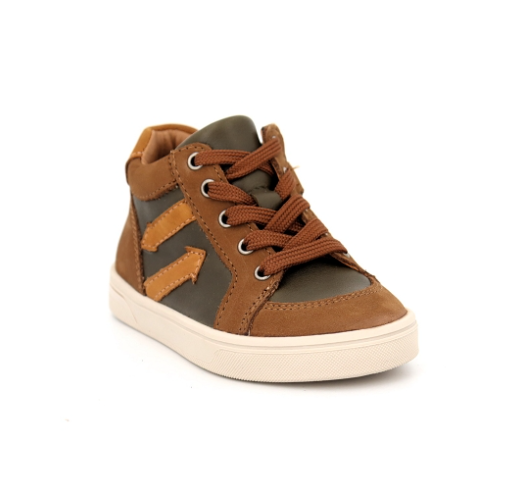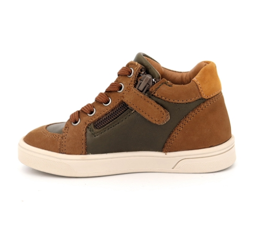 Bottines garçon Cuir Doublure cuir Fermeture éclair + lacets Avant protégé BELLAMY coloris marron / kaki
