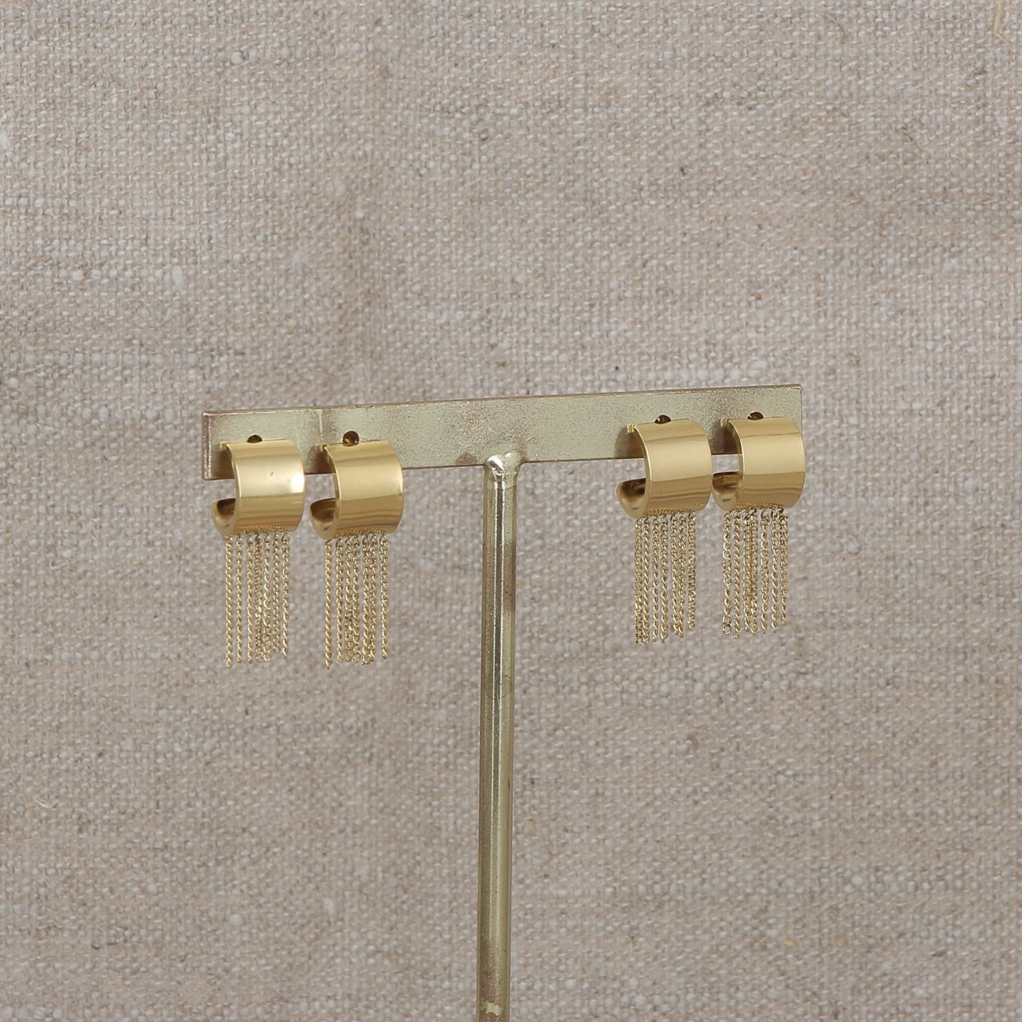 Le design géométrique des boucles Agnes, associé à des chaînettes qui dansent au gré de vos mouvements, apporte une touche de modernité et de féminité.