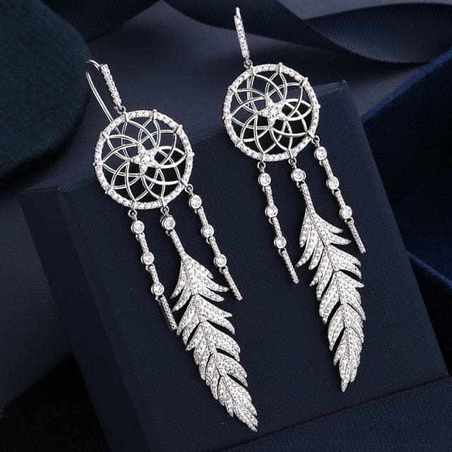 Incorporez ces Élégantes Boucles d’Oreilles Esprit Capteur de Rêves à votre garde-robes de Bijouterie afin d’incarner une allure inspirée des femmes autochtones. Parées de cristaux de zirconium blancs, elles conféreront élégance et caractère à votre tenue.