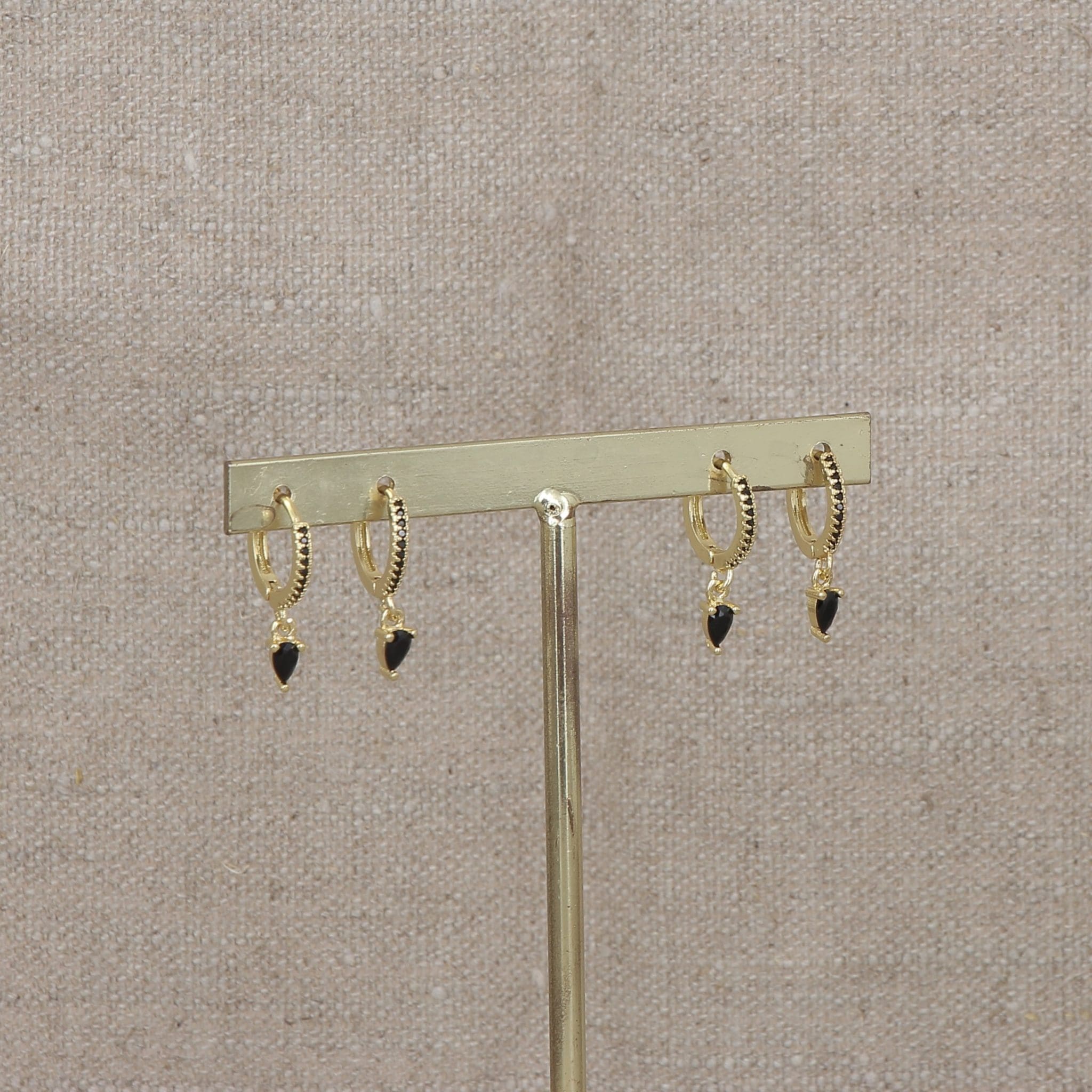★ Boucle d’oreilles créole dorée incrustée de pierres noires