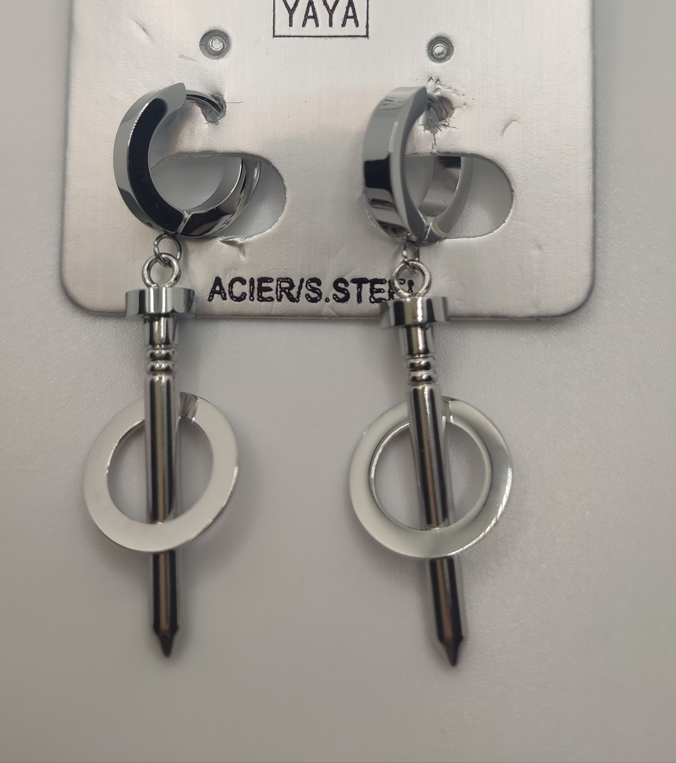 boucles d’oreilles forme clou argenté