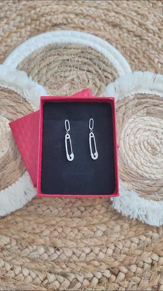 Boucles d’oreilles argentées et strass épingles