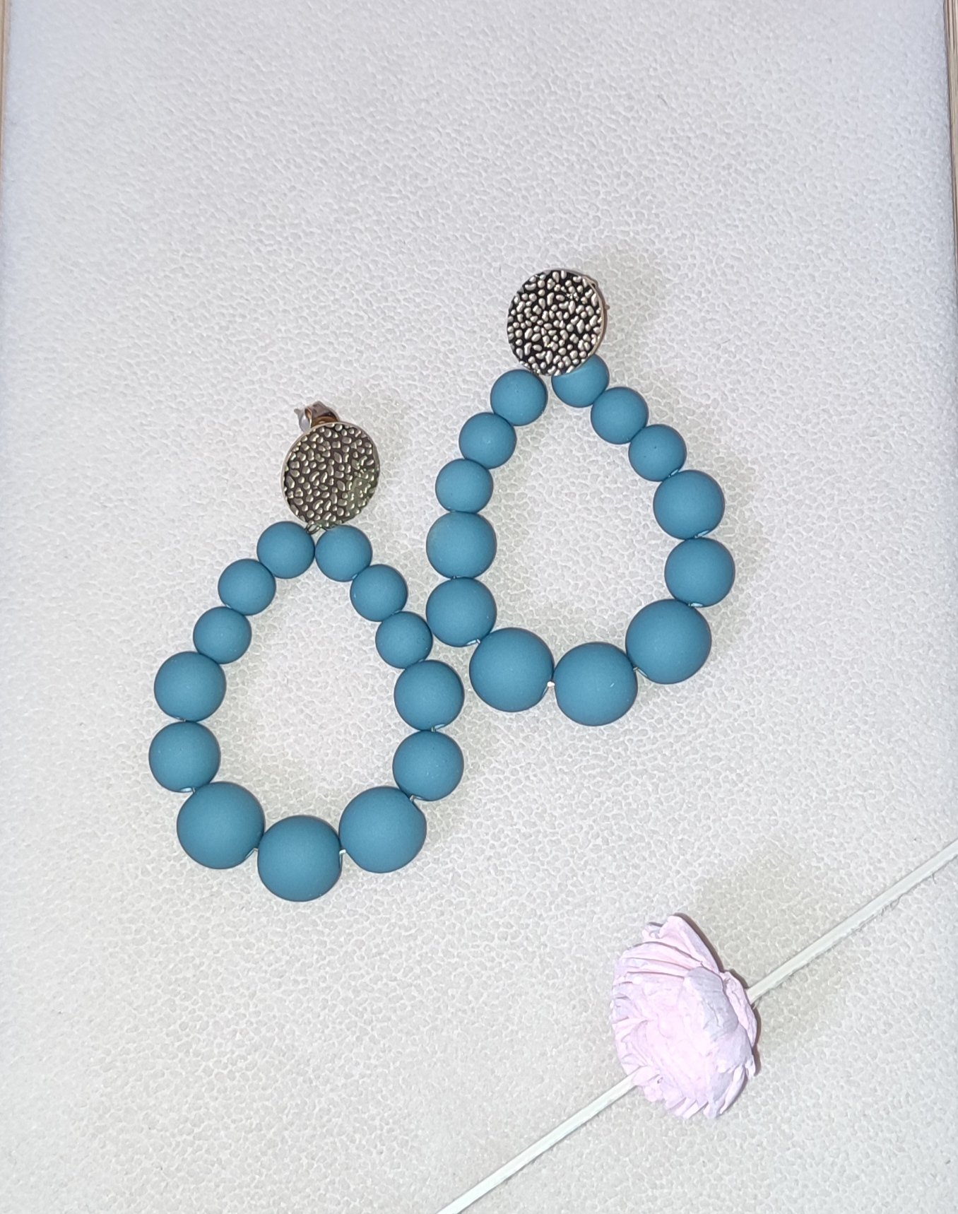 Boucles d’oreilles perles bleu agata mat acier inoxydable