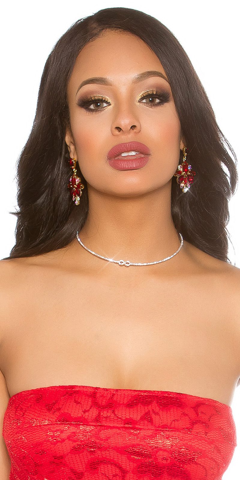 Boucles d’oreilles strass et christal SALOME couleur Rouge – boutique en ligne de vetements femme fashion, femme sexy et femme tendance a prix bas