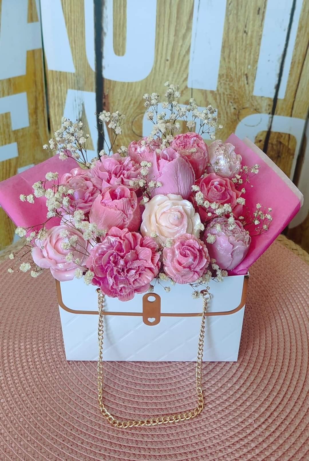 Bouquet de fleurs en bougies parfumées cire naturelle d’huile d’olive idée Cadeau fête des mères