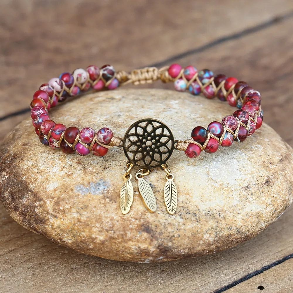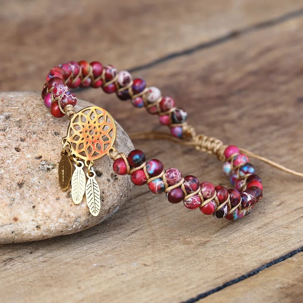 Découvrez le charme enchanteur de notre Bracelet Attrape-Rêve “Forêt Rouge”, un chef-d’œuvre artisanal où l’acier inoxydable rencontre la mystique du capteur de rêves.