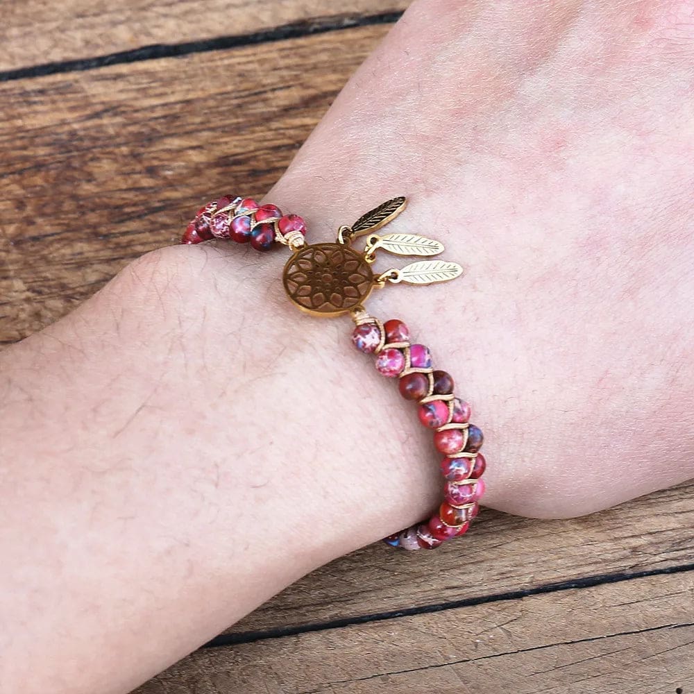 Une Nuance Passionnée de Rouge : Inspirant l’âme de la forêt vibrante, ce bracelet capture la splendeur naturelle et le côté mystique qu’évoque le rouge intense.