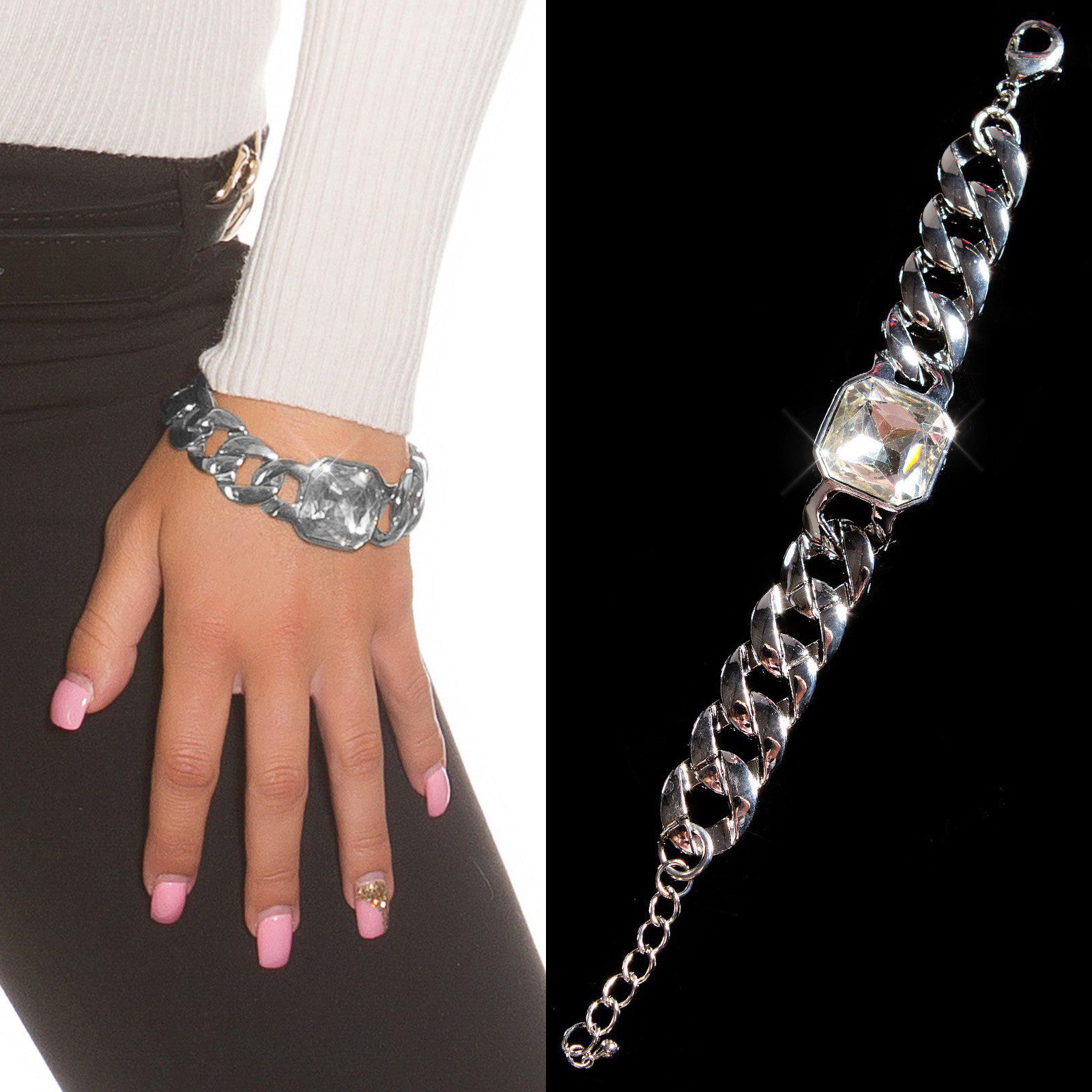Bracelet chaîne sexy ELSA et surmonté d’un strass XXL