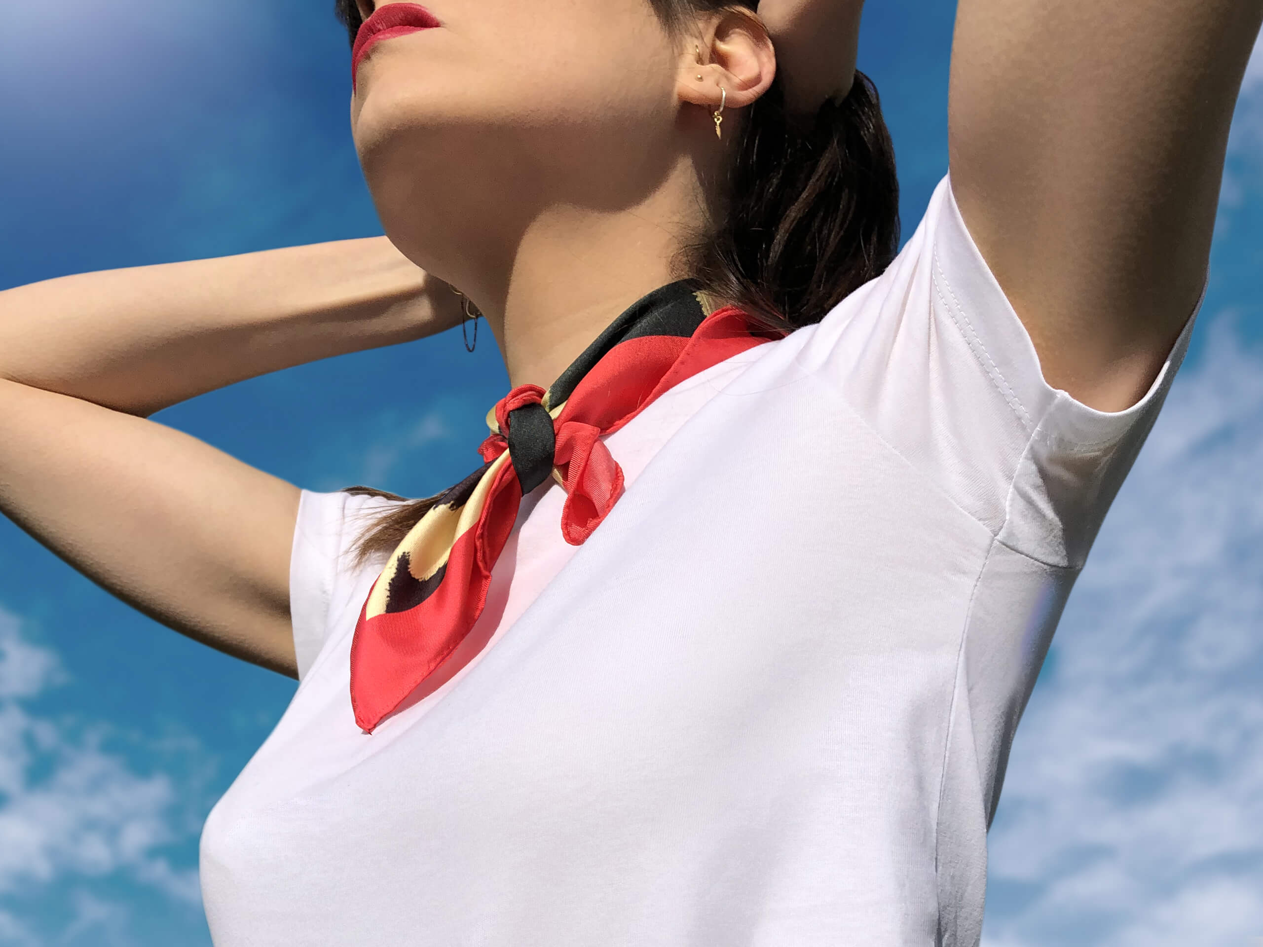 A nouer autour du cou à la Audrey Hepburn ou à la ceinture de ton jeans pour un revival so 60’s. A attacher dans tes cheveux façon Thelma & Louis ou à enlacer autour de ton bras comme Freddie Mercury… Le carré en soie chez Odette & Lulu est en folie et n’a de limites que celles de ton imagination.