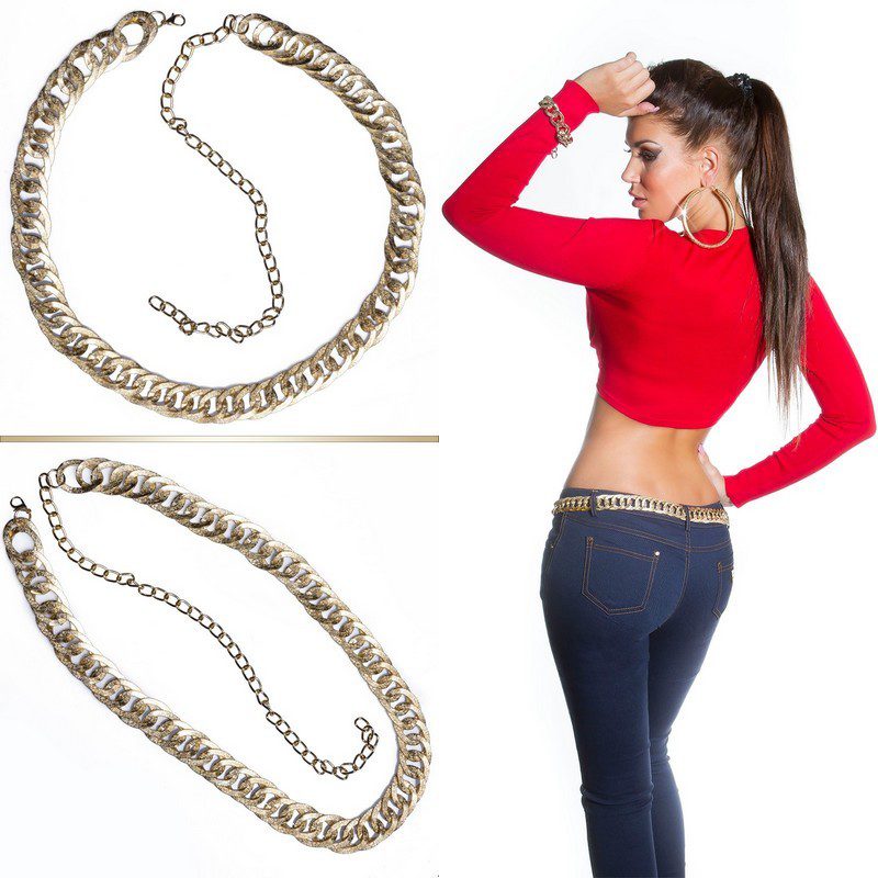 Ceinture femme chaîne tendance couleur or – Complétez votre look avec des accessoires stylés : ceintures, bonnets, écharpes, foulards, colliers