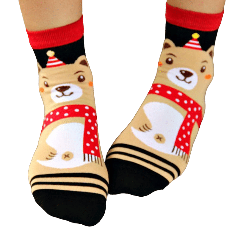 Égayez vos fêtes avec nos chaussettes de Noël pour femme ! Réalisées dans un mélange doux de coton et de polyester, elles offrent confort et chaleur tout en apportant une touche festive à vos tenues. Choisissez parmi nos motifs uniques – Père Noël, Bonhomme de neige, Cerf élaphe et Ours – et savourez la magie de Noël à chaque pas.