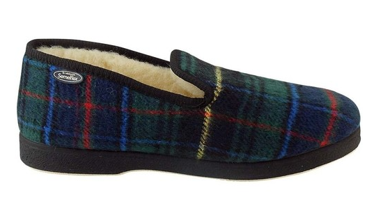 Chausson d’intérieur charentaise homme doublé laine semelle épaisse dessus sans couture SEMELFLEX Calolene écossais vert kaki