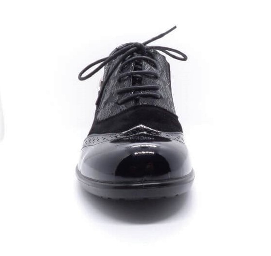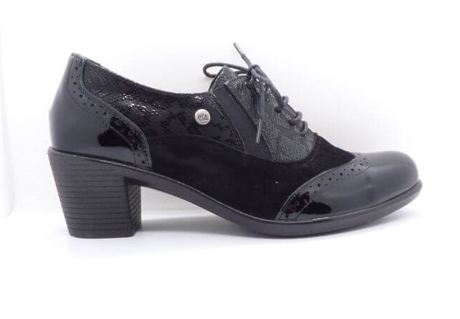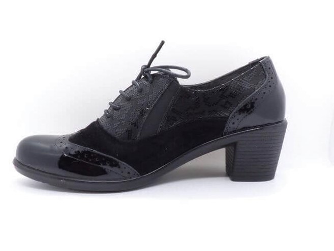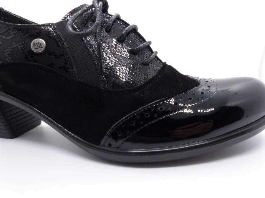 chaussure derby à talon, fermeture à lacet cuir INEA Bijou noir vernis noir